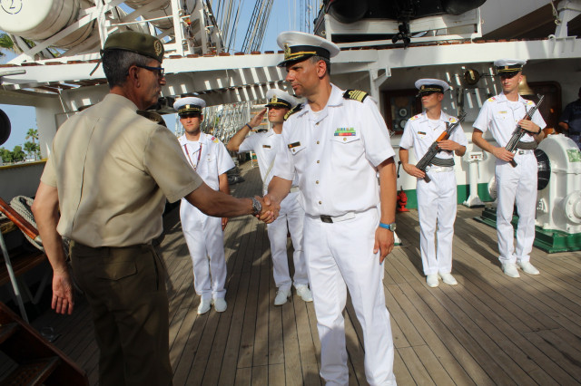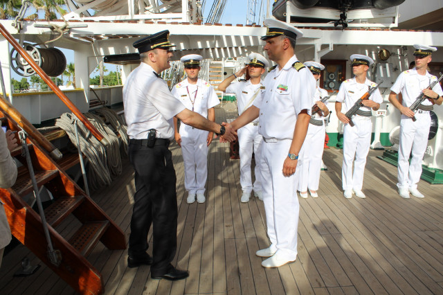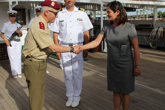Spre seară, la bordul navei a avut loc o recepție oferită de Consulatul General al României de la Castellon, unde a fost invitat ambasadorul României în Spania, domnul George Gabriel Bologan, precum și personalități diplomatice și reprezentanți ai autorităților civile și militare.