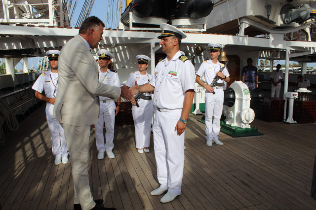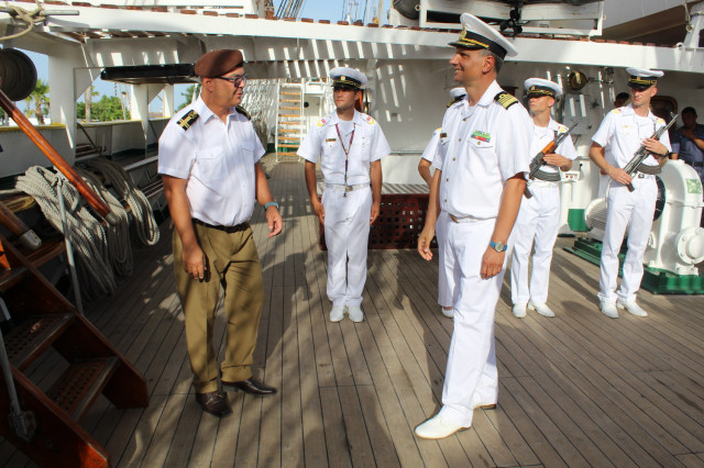 În a doua zi a escalei, domnul comandant, împreună cu doamna consul general au fost primiți de președintele Autorității Portuare, domnul Aurelio Martinez Estevez și de alte autorități portuare.