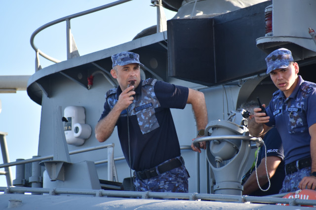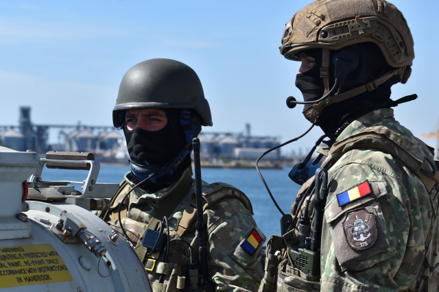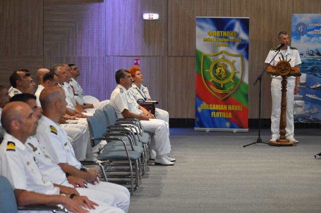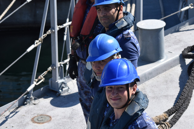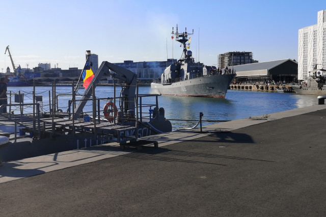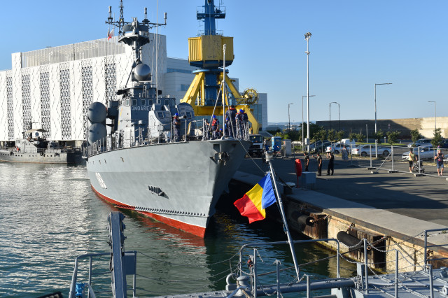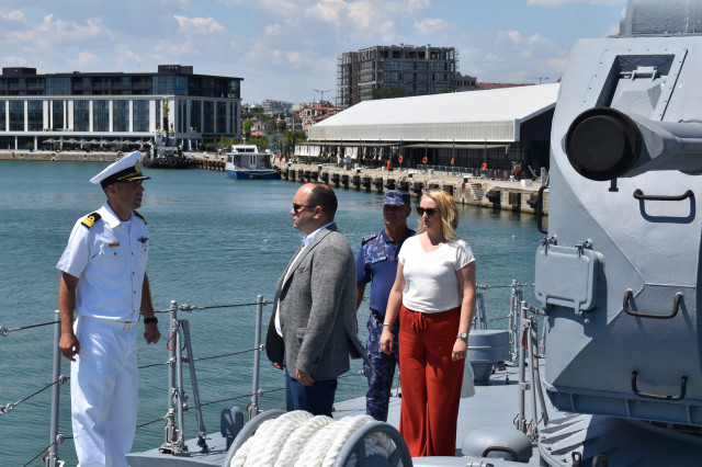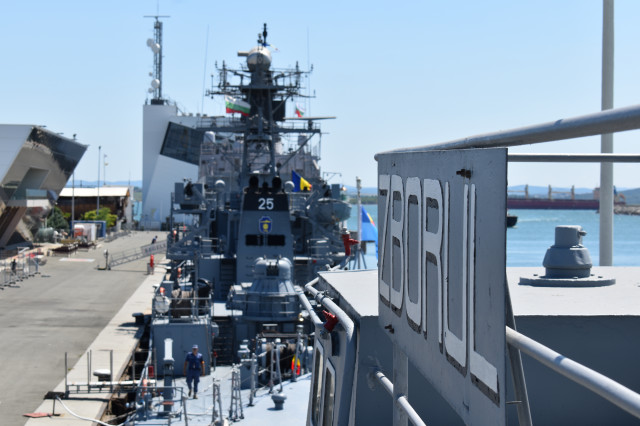 Escala navelor militare românești în portul bulgăresc Burgas are loc pentru refacerea capacității de luptă, prilej cu care ofițerii români participă la ședințele de lucru pentru stabilirea detaliilor organizatorice ale exercițiului multinațional.