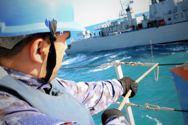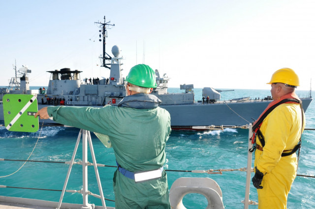 Ritmul alert în care s-au succedat activitățile la bordul fregatei a constituit provocarea şi constanta primelor zile pe mare. Deprinderile formate atât la cheu, cât și în precedentele antrenamente pe mare au fost exploatate prin punerea în aplicare a procedurilor NATO în cadrul unor secvențe complexe. Eficiența unei nave într-o acțiune comună are la bază o autonomie cât mai mare, iar aceasta poate fi crescută prin executarea procedurii specifice realimentării pe mare (R.A.S.- Replenishment At Sea). Toate sarcinile au fost executate de echipajul fregatei „Regele Ferdinand”, sub coordonarea comandantului secund, căpitan-comandorul Codrin Misarăș. Manevra de apropiere a fregatei „Regele Ferdinand” de fregata bulgărească VERNI (42) a fost realizată cu precizie din comanda navei, în timp ce marinarii cu rol la R.A.S. au stabilit legăturile între cele două nave. Buna pregătire a militarilor români și-a spus și de data aceasta cuvântul, astfel încât întreaga activitate s-a încheiat cu salutul comandanților celor două nave în semnalele sonore ale stației de amplificare.