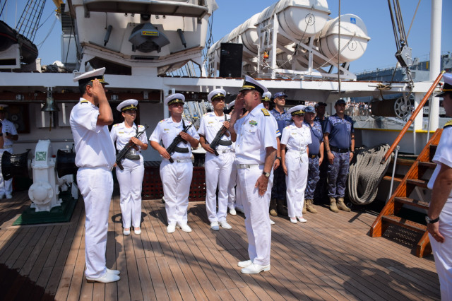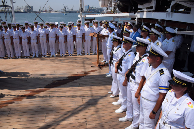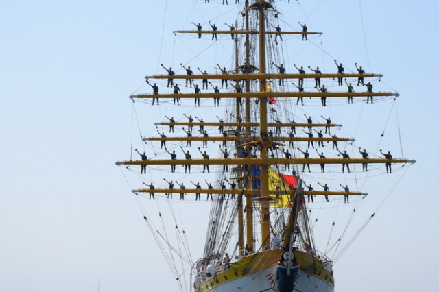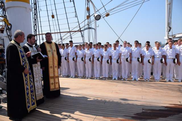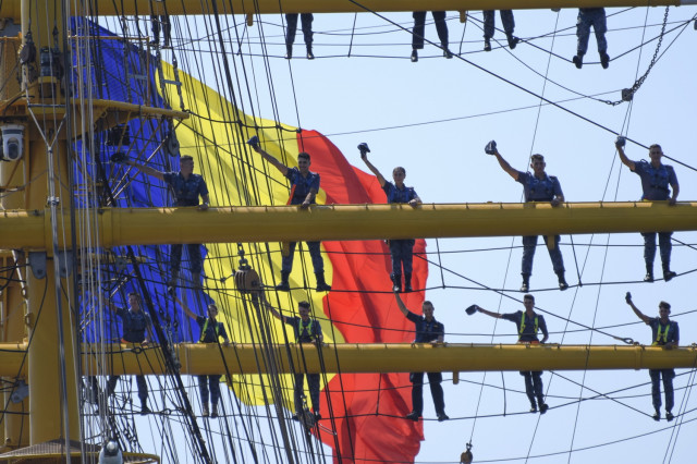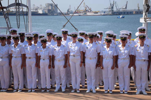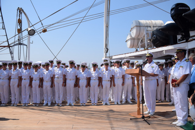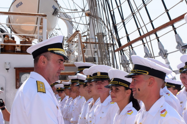 Sosirea Navei-școală „Mircea” din al doilea marș de instrucție din acest an