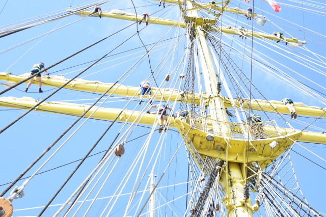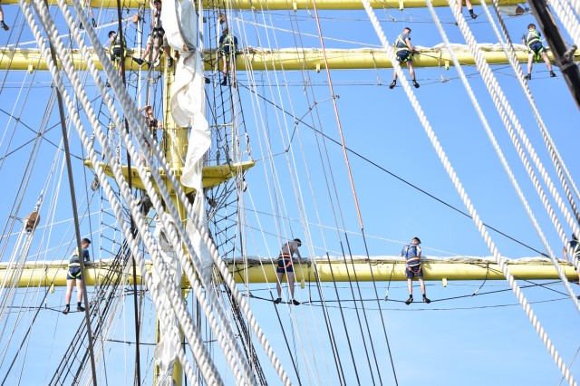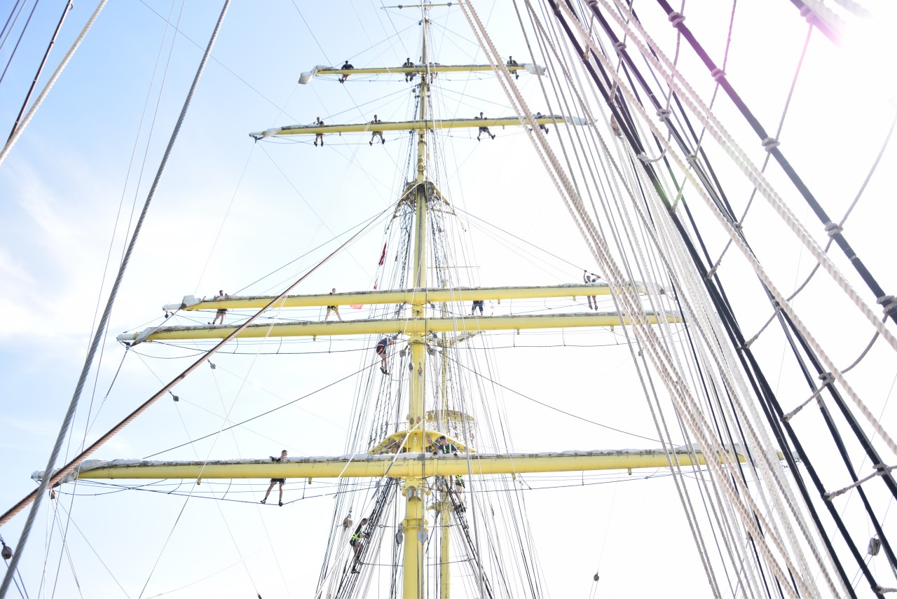 O nouă zi, o nouă lecție pentru cadeți. În ciuda după-amiezei toride, la ieșirea din Dardanele, viitorii maiștri au desfășurat antrenamentul de simulare a întinderii velelor, în înaltul catargelor. Pentru cei din afara lumii marinarilor, tot exercițiul lor ar părea un veritabil spectacol, însă pentru cadeții români a fost doar o altă sarcină ce trebuia a fi împlinită cu succes.