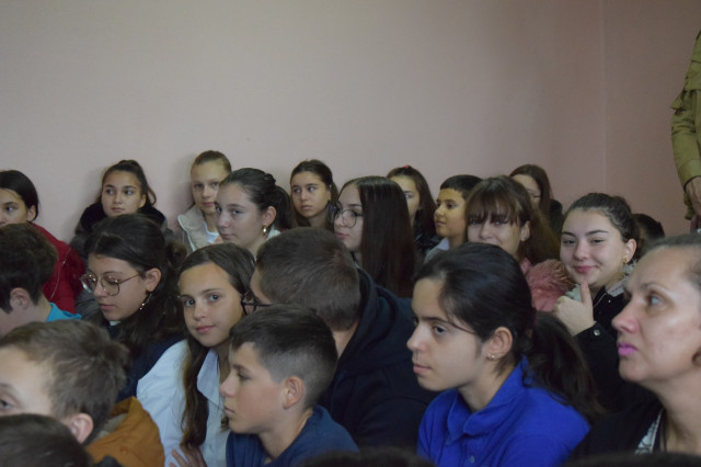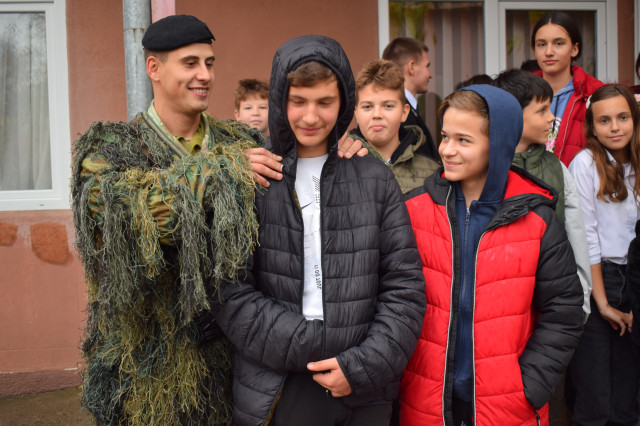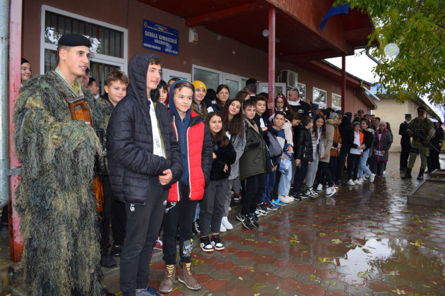 Tăcuți și absorbiți de cele auzite, pentru o clipă, elevii de 11, 12, 13 și 14 ani din localitatea Văcăreni s-au imaginat pe ei înșiși în hainele deosebite ale oaspeților, etalând cu mândrie tresele aurii și purtând pe cap cascheta cu lauri.