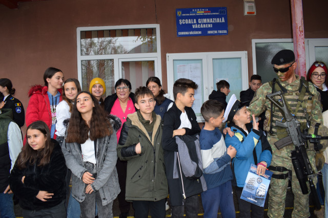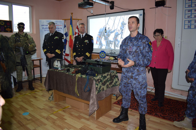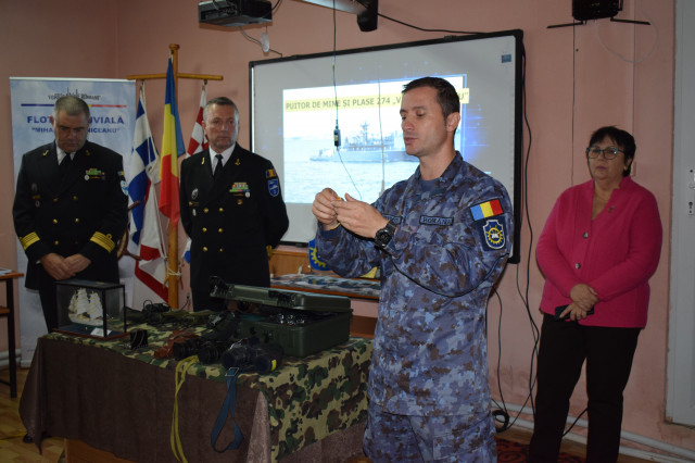 Scafandrii militari au fost reprezentați în mijlocul comunității de la Văcăreni tot de un tulcean, sergent major Pascale Roibu. Originar din Zebil, Pascale Roibu este mai mult decât un simplu scafandru, este un căutător de povești și comori, în toate formele, ascunse în cufărul Zeului Neptun. El le-a vorbit elevilor din Văcăreni despre lumea fascinantă a adâncurilor, unde, ca într-un muzeu, zac conservate în crustă de scoică epave de corăbii, ruine de orașe uitate, aeronave militare cu aripile frânte în război.