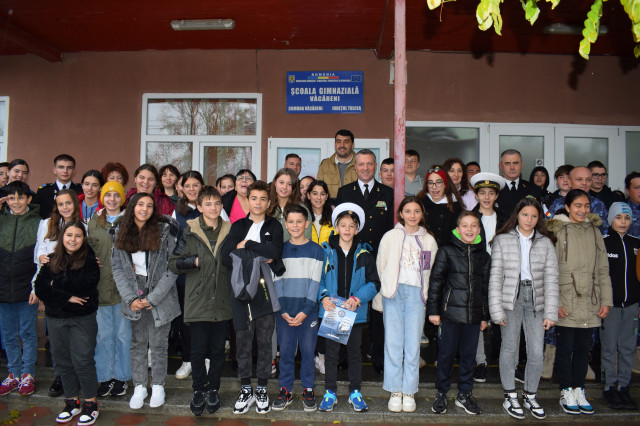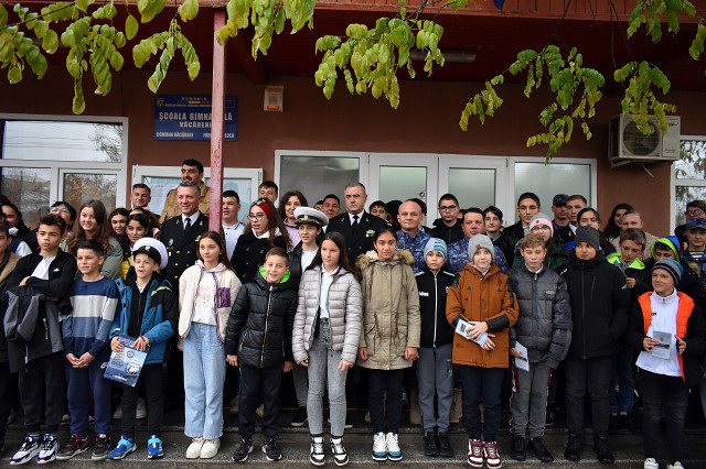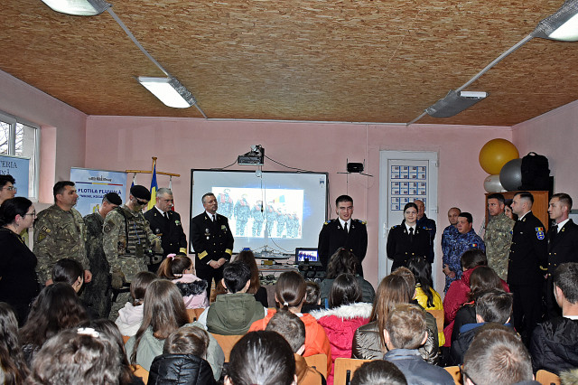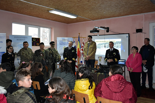 Comuna Văcăreni din județul Tulcea și-a reîntâlnit miercuri, 23 noiembrie, fiii plecați să îmbrace uniforma militară a Forțelor Navale Române. Evenimentul s-a desfășurat în sala de sport a școlii gimnaziale din comună. Câteva zeci de elevi de clasele V-VIII s-au bucurat de întâlnirea cu două personalități de marcă ale comunității, comandorul Marcel Neculae, comandantul Flotilei Fluviale și comandorul Nicu Chirea, locțiitorul comandantului Flotei.