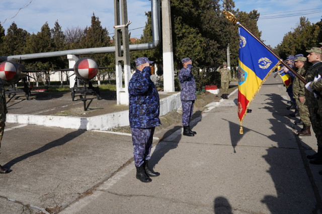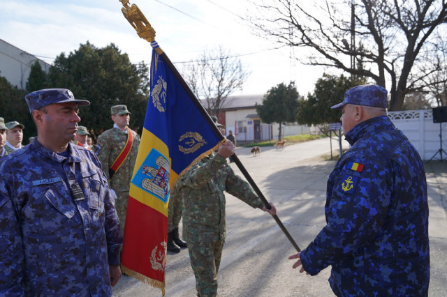 Contraamiralul de flotilă Auraş Liviu Coman i-a mulțumit colonelului Florin Năforniţă pentru modul în care a asigurat comanda unităţii şi exemplul personal pe care l-a dat subordonaților săi şi i-a urat succes comandorului Vasile Lalău în noua funcţie.