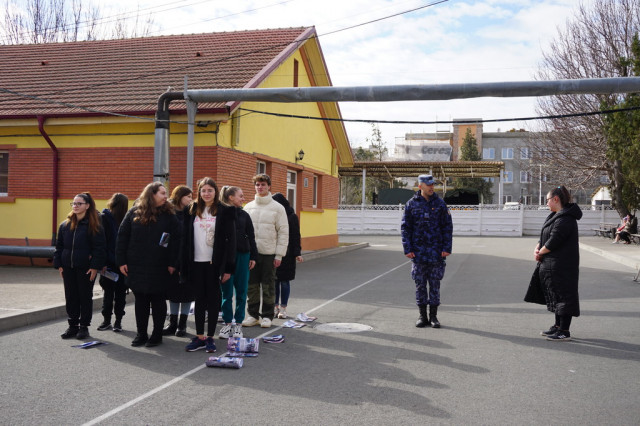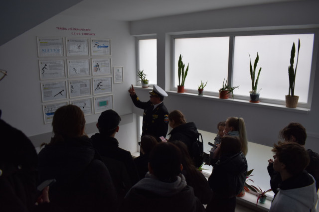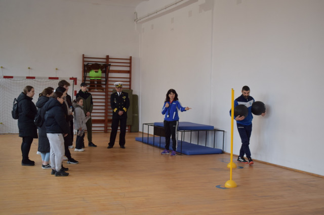Pentru că sunt clasa a XII-a și au posibilitatea, chiar în aceste zile, să se înscrie pentru a opta pentru cariera militară, elevii au vizitat și Centrul Zonal de Selecție și Orientare din Constanța, unde au avut parte de o amplă prezentare a probelor de selecție din perspectiva evaluatorilor. Comandantul CZSO Constanța, comandorul Emil Mihai, le-a dat sfaturi punctuale elevilor cum să se pregătească pentru probele psihologice, iar profesorii de sport le-au oferit șansa de a-și încerca aptitudinile la traseul aplicativ.