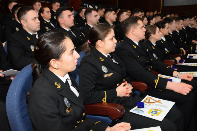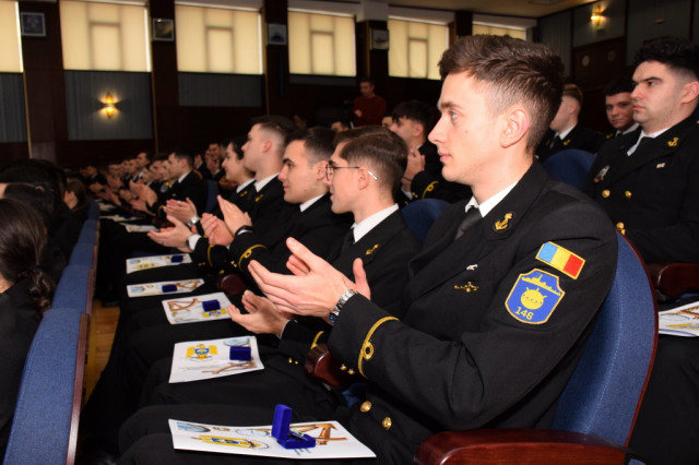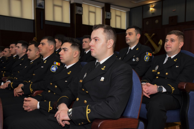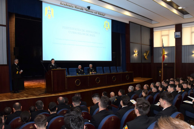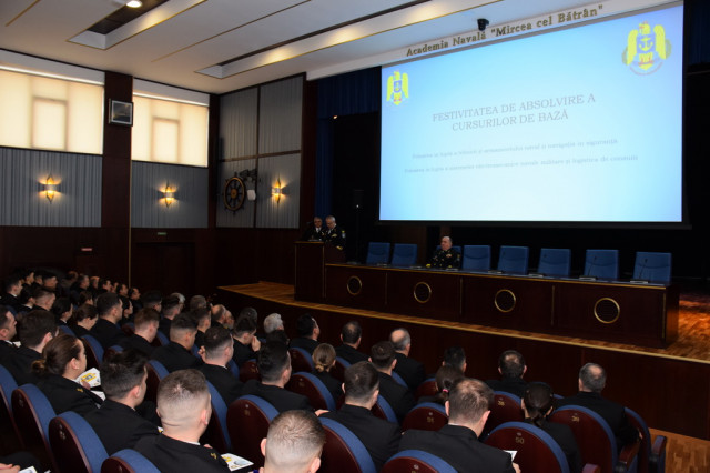 Academia Navală „Mircea cel Bătrân” a organizat joi, 2 martie, festivitatea de absolvire a cursurilor de bază „Folosirea în luptă a tehnicii și armamentului naval și navigația în siguranță” și „Folosirea în luptă a sistemelor electromecanice navale militare și logistica de consum”. Cei 82 de aspiranți din noua promoție de ofițeri au absolvit studiile universitare de licență la Academia Navală „Mircea cel Bătrân” în vara anului 2022, după care au urmat, timp de șase luni, cursurile postuniversitare pentru preluarea primei funcții în cadrul unităților din Forțele Navale Române.
