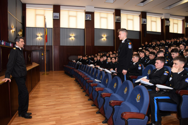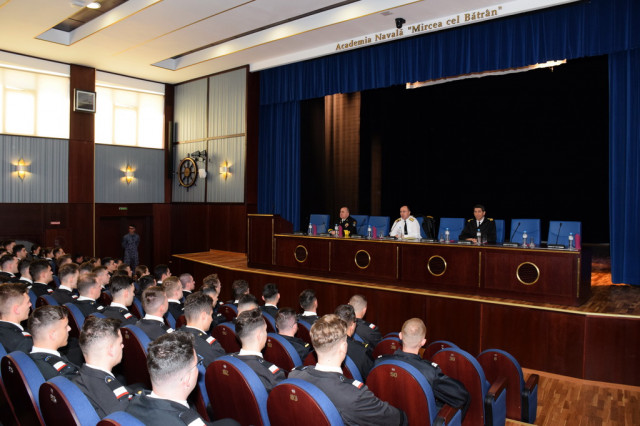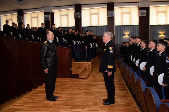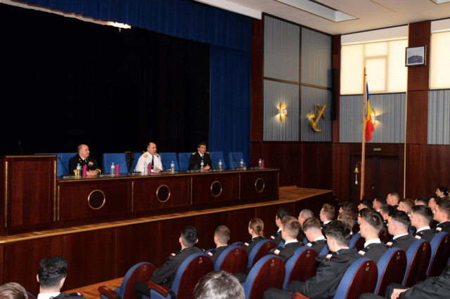 Șeful Statului Major al Forțelor Navale, viceamiral Mihai Panait, s-a întâlnit joi, 9 martie, la Constanța, cu elevii și studenții militari de la Colegiul Național Militar „Alexandru Ioan Cuza”, Școala Militară de Maiștri Militari a Forțelor Navale „Amiral Ion Murgescu”, Academia Navală „Mircea cel Bătrân”, precum și cu cadrele didactice și instructorii de la cele trei instituții militare de învățământ.