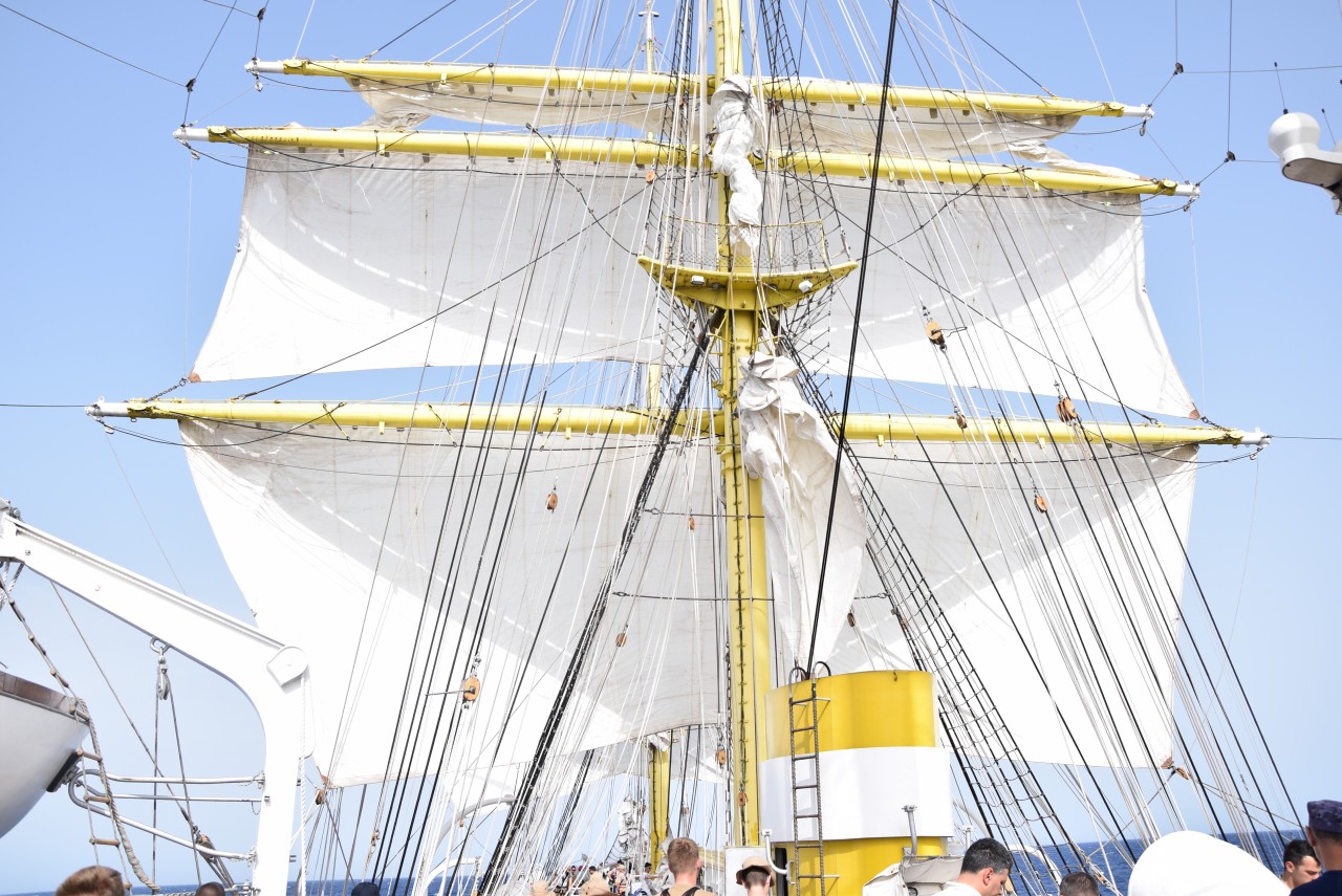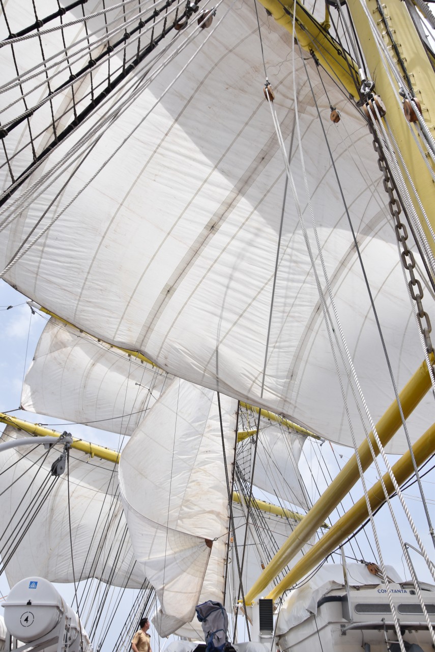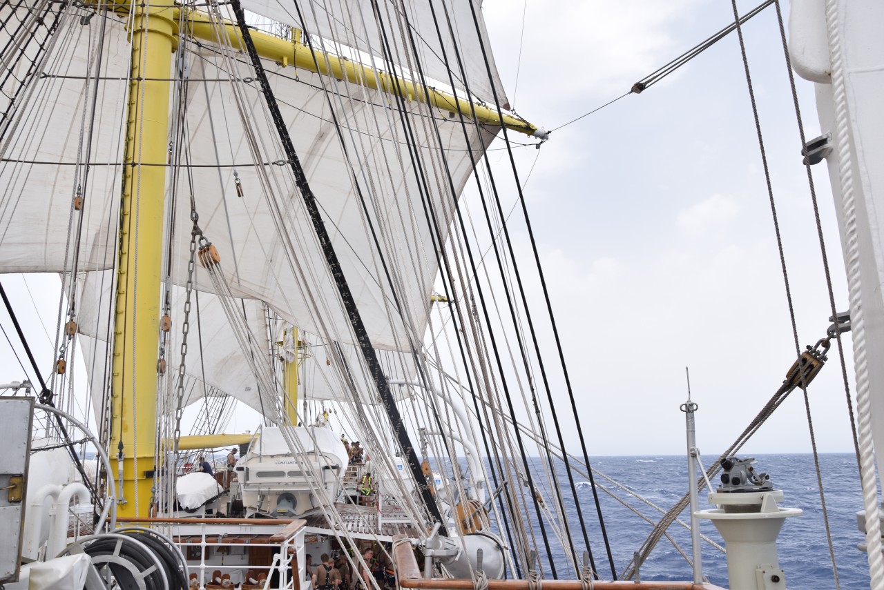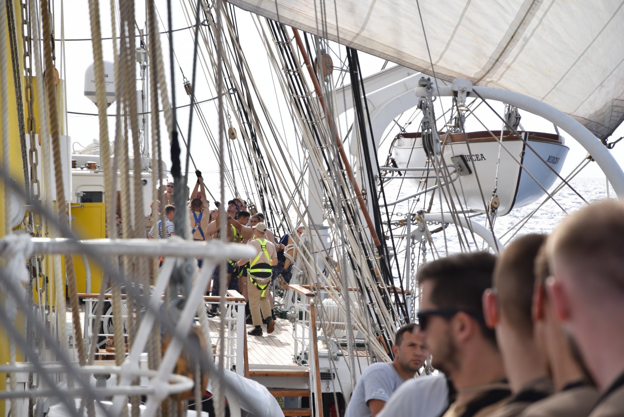 În ciuda unei mări agitate, pe care fiecare dintre noi am resimțit-o în mod diferit, ne-am încurajat reciproc și am făcut tot posibilul să nu apelăm la doctorul navei, pentru a executa cu toții cea mai frumoasă misiune a cadeților români, întinderea velelor. Cadeții au raportat: „Misiune îndeplinită!”, iar satisfacția se putea citi pe chipurile tuturor celor ambarcați. Până seara, motoarele s-au putut odihni, iar navigația a fost realizată numai cu ajutorul vântului.