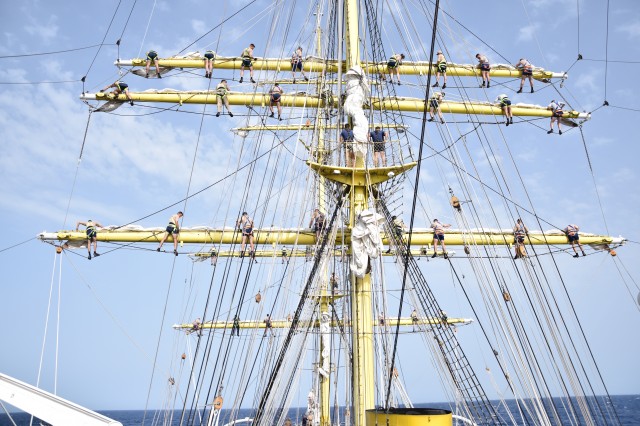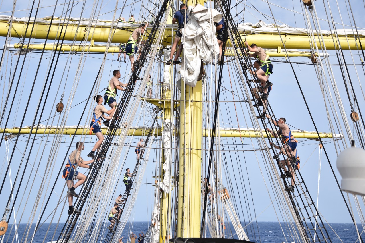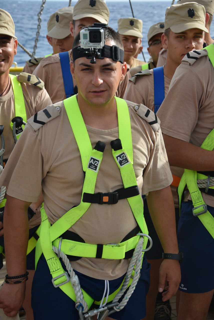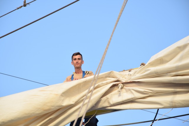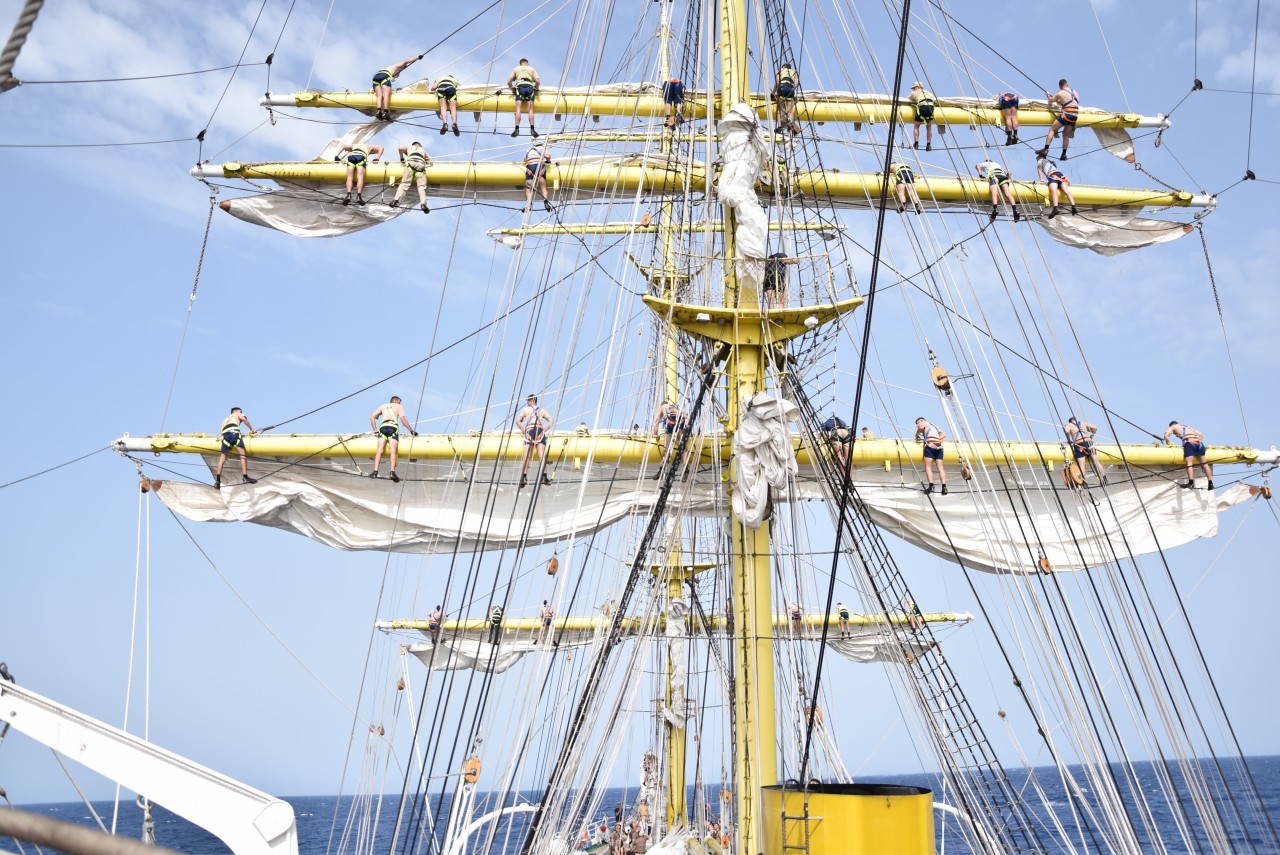 În ciuda unei mări agitate, pe care fiecare dintre noi am resimțit-o în mod diferit, ne-am încurajat reciproc și am făcut tot posibilul să nu apelăm la doctorul navei, pentru a executa cu toții cea mai frumoasă misiune a cadeților români, întinderea velelor. Cadeții au raportat: „Misiune îndeplinită!”, iar satisfacția se putea citi pe chipurile tuturor celor ambarcați. Până seara, motoarele s-au putut odihni, iar navigația a fost realizată numai cu ajutorul vântului.