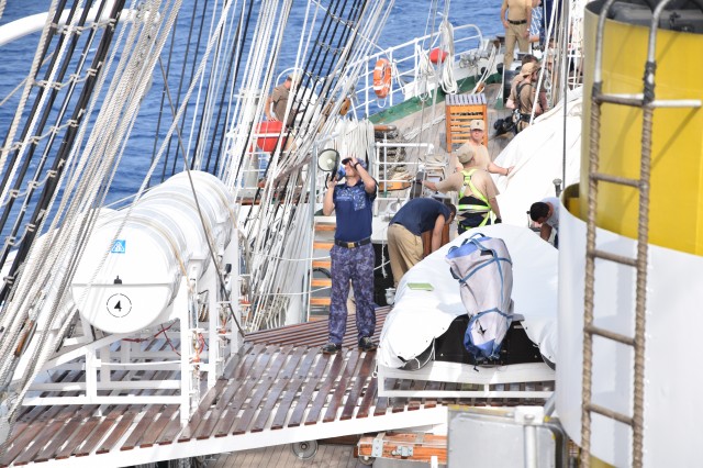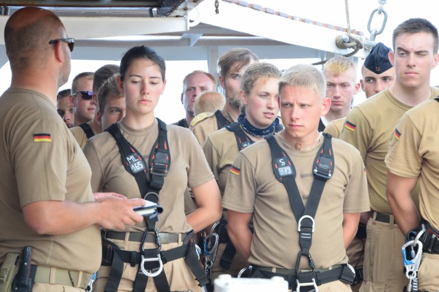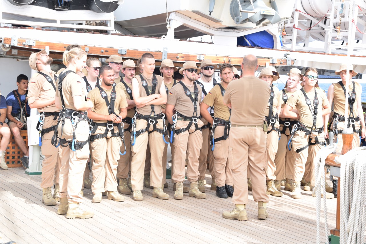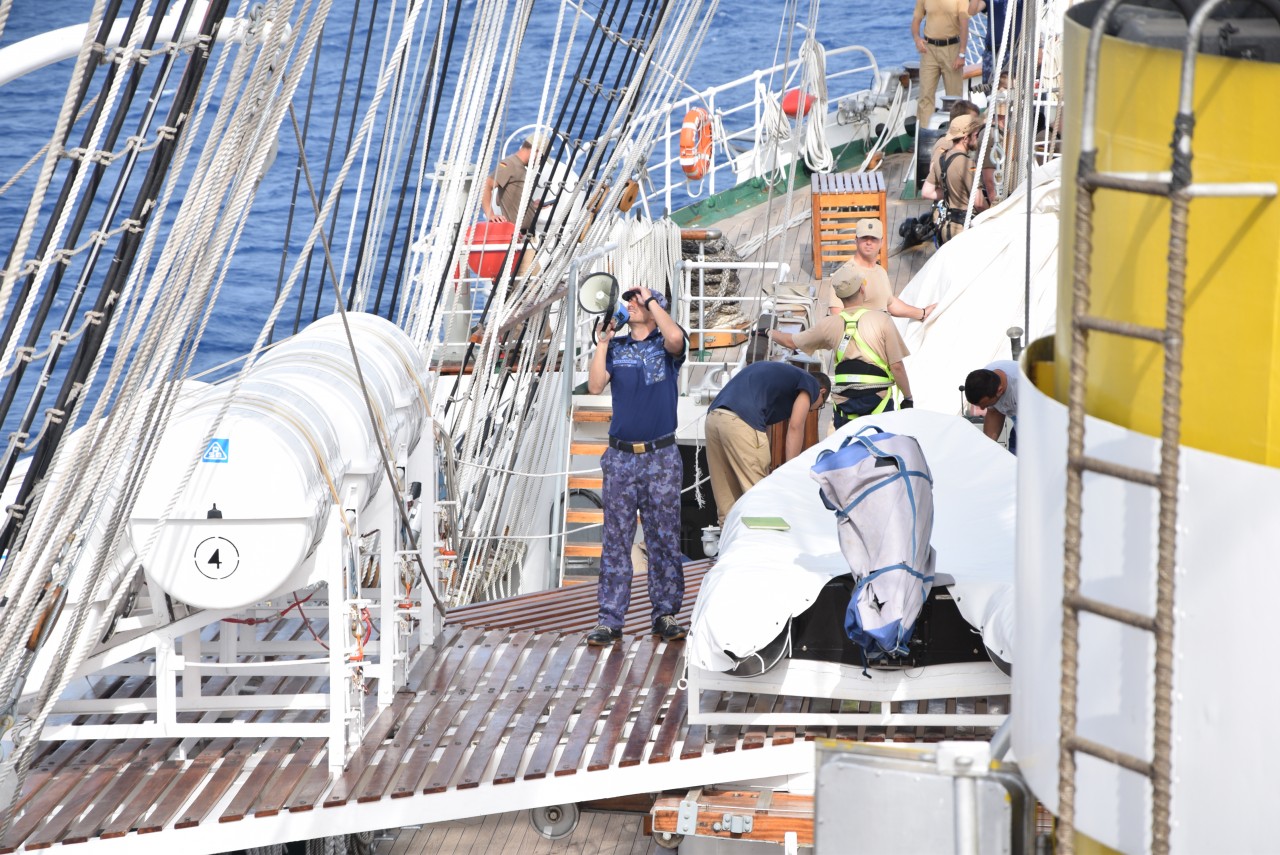 Instructorii și cadeții germani, în asistența echipajului român, au făcut demonstrații de evacuare medicală, operație de care sperăm să nu avem nevoie în timpul acestui marș, dar nici pe viitor. O altă procedură exersată la bordul navei a fost cea a grupei de menținere a vitalității navei, care a simulat stingerea unui incendiu, atât în spațiile interioare, cât și pe punte. Pentru cadeți, aceste exerciții reprezintă o parte din lecțiile învățate în timpul acestui stagiu de practică, dar și o ilustrare a ceea ce îi va aștepta în cursul carierei lor în Marina Militară.