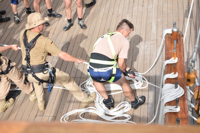 La bordul navei, activitățile specifice au fost variate și benefice pentru setea de cunoaștere a cadeților germani și români, toate acestea fiind desfășurate pe un fundal dominat de Marea Egee și insulele grecești. Prezența camarazilor germani nu este întâmplătoare, scopul colaborării noastre fiind acela de a învăța unii de la ceilalți, iar cadrul necesar pentru a realiza acest lucru este corespunzător standardelor internaționale.