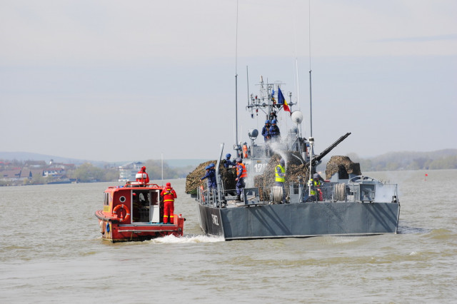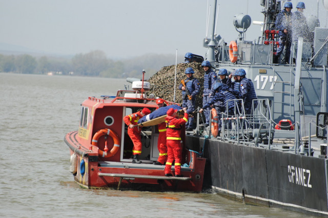 Ca urmare a schimbului de focuri desfășurat pe fluviu, scenariul a presupus simularea unui incendiu survenit la bordul unei nave militare, soldat cu un rănit. Victima a fost preluată de la bordul navei avariate cu o șalupă a ISU „Delta” Tulcea și evacuată, în siguranță, pe uscat, de unde a fost preluată de ambulanță și transportată la spital.