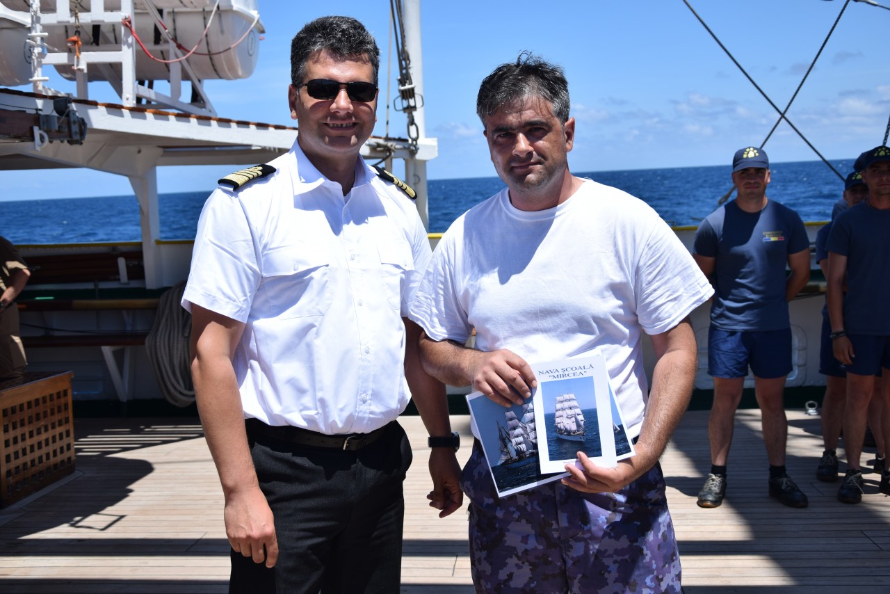 Suntem mulți, suntem o familie, iar aniversările camarazilor noștri sunt importante pentru toată lumea. În aceste zile, am avut parte deja de felicitarea a trei sărbătoriți de la bordul navei, doi cadeți și un membru al echipajului. Cu toții i-am felicitat la puntea centru, unde comandantul navei le-a transmis cele mai bune gânduri ale sale, le-a mulțumit că suntem împreună în acest marș și le-a urat să aibă parte numai de reușite în cariera lor de marinar militar.