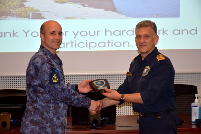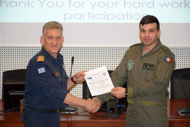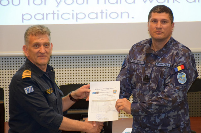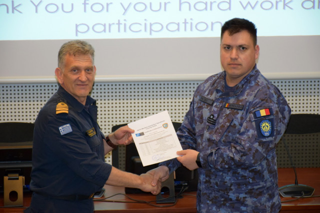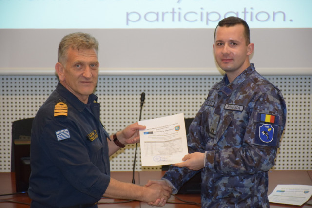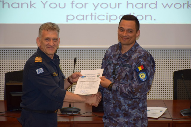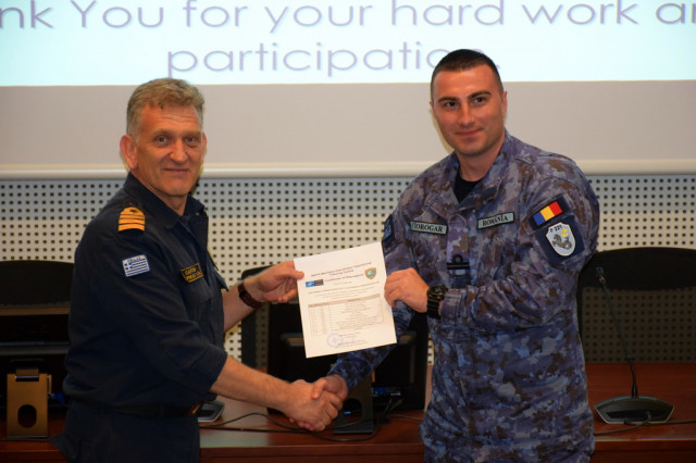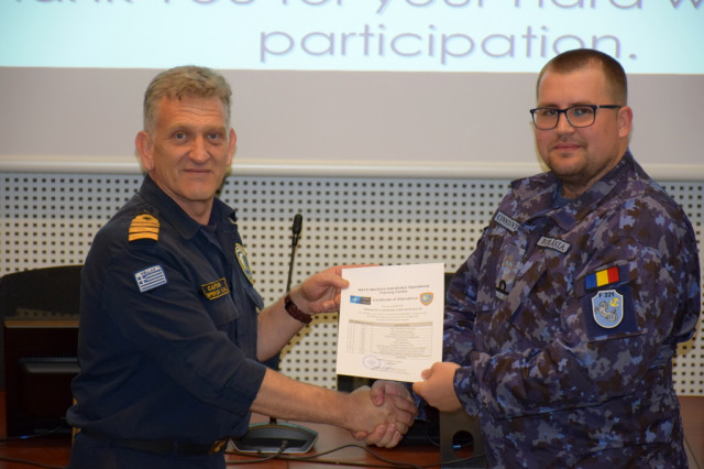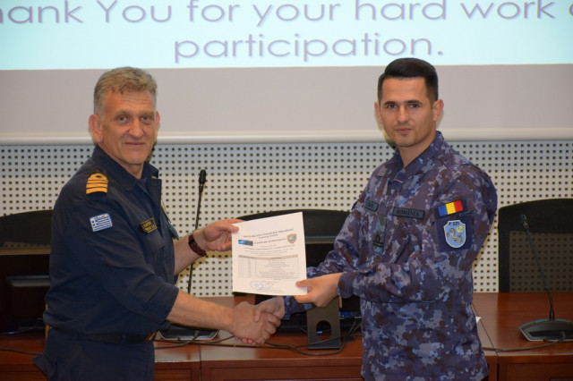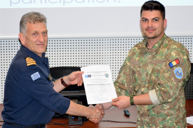 În perioada 7-13 mai, fregata „Regele Ferdinand” a executat o escală de refacere a capacității operaționale de luptă, precum și pentru integrarea în gruparea navală a Operației IRNI. De asemenea, o parte din echipa de comandă a navei și echipa de inspecție de la bord au participat la cursuri și antrenamente specifice operației, la sediul NMIOTC din Souda, precum și la bordul unei nave militare din portul militar, destinată pregătirii și instruirii pentru activitățile de acest tip. La finalul modulelor teoretice și practice, desfășurate în vederea perfecționării deprinderilor la standardele internaționale, cursanții fregatei „Regele Ferdinand” au participat la o ceremonie de absolvire, în cadrul căreia au fost felicitați pentru profesionalismul și modul în care au reușit să își însușească noile informații sau să își consolideze cunoștințele dobândite de-a lungul carierei militare. Totodată, comandantul fregatei „Regele Ferdinand”, comandor George-Victor Durea, și-a arătat recunoștința și aprecierea față de reprezentanții NMIOTC, pentru contribuția adusă la dezvoltarea deprinderilor militarilor români în contextul misiunilor de tipul celei a Operației EUNAVFOR MED IRINI, și a subliniat importanța colaborării dintre Forțele Navale Române și centrul de pregătire NMIOTC din Souda.