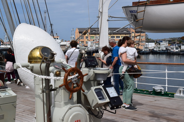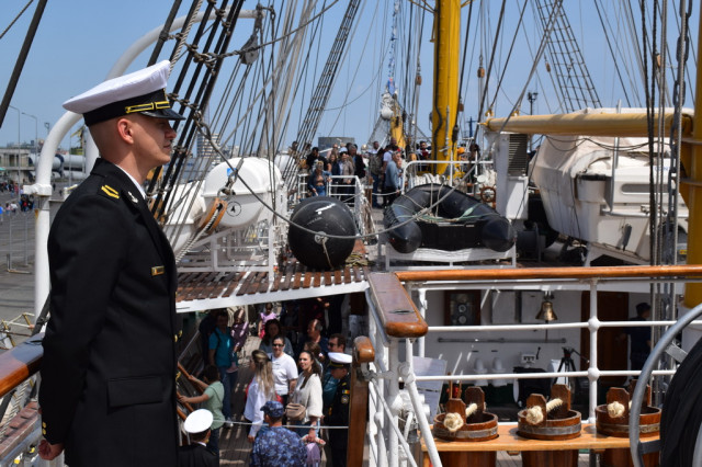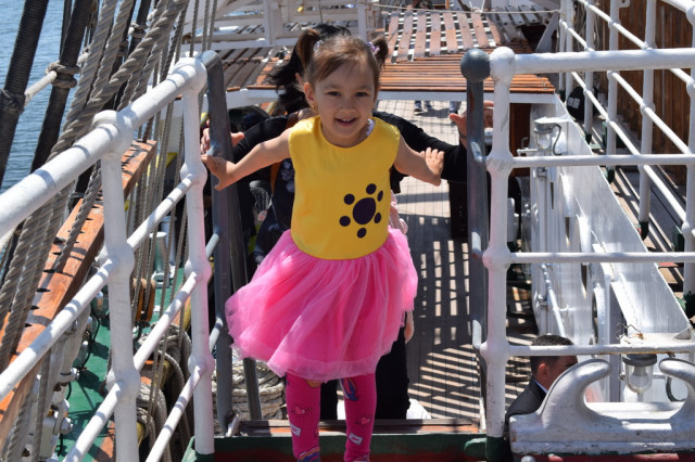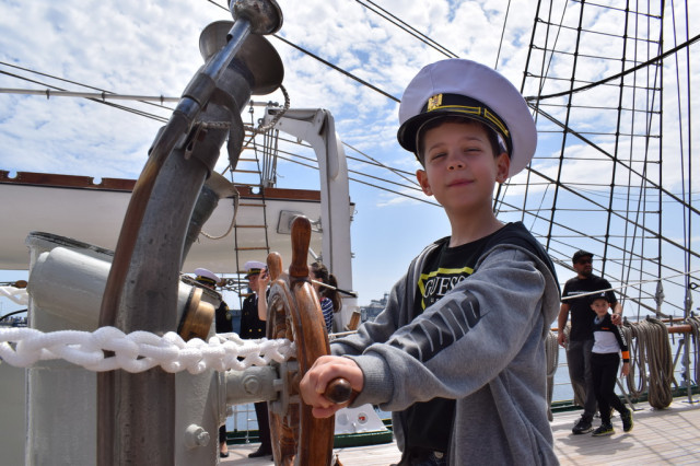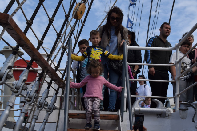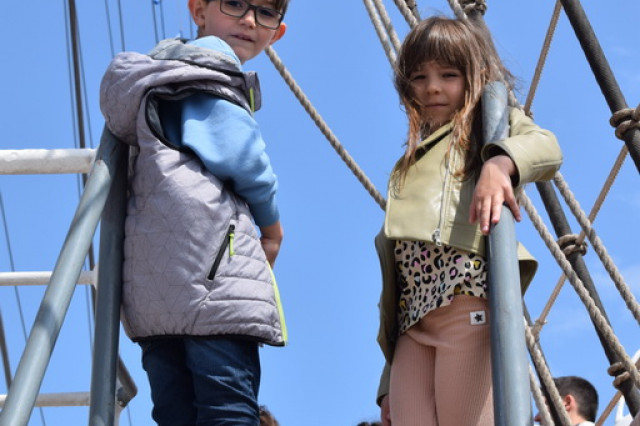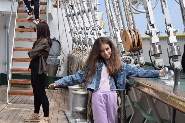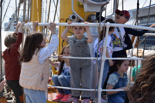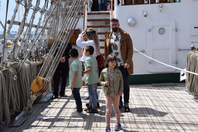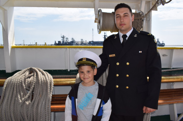 Cei mai încântați de experiență au fost, fără îndoială, copiii, curioși să afle la ce folosesc toate dispozitivele pe care le-au întâlnit pe punțile navei. De asemenea, micuții s-au bucurat să se fotografieze alături de elevii militari îmbrăcați în ținuta neagră, pe care, l-a început, îi admirau cu timiditate, neîndrăznind să intre în vorbă cu ei, însă, după schimbul de șepci și caschete, dialogurile au descurs firesc, întrebările despre viața de marinar și-au găsit răspunsurile, iar zâmbetele au curs în cascadă.
