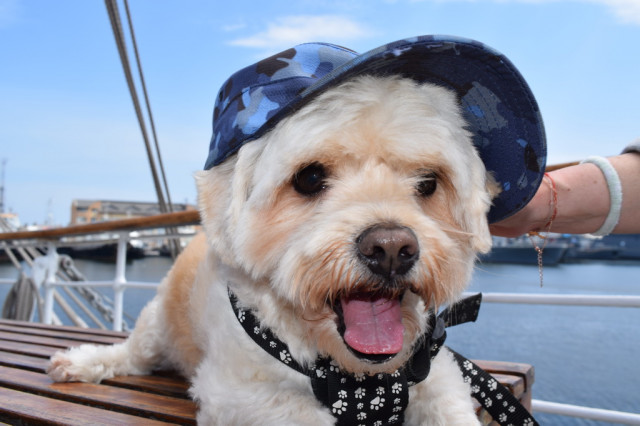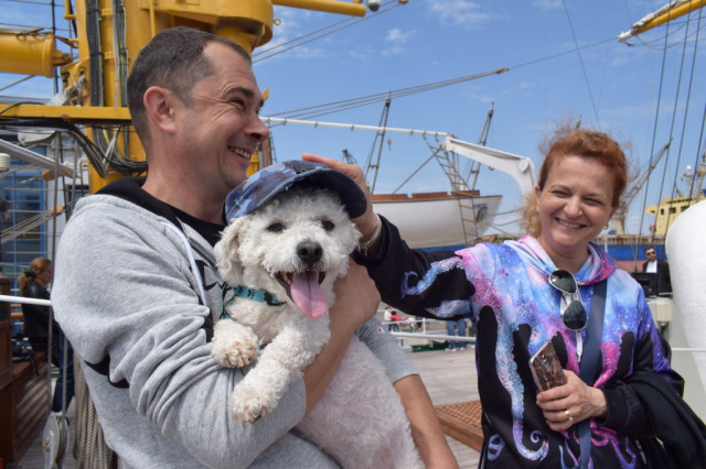 Deși echipajul nu se aștepta, printre oaspeții care au urcat la bord s-au aflat și câțiva căței, care, alături de stăpânii lor, s-au bucurat de briza mării pe punte și au plecat apoi acasă cu fotografii amintire de la nava-școală „Mircea”.