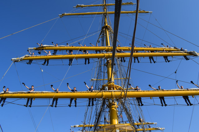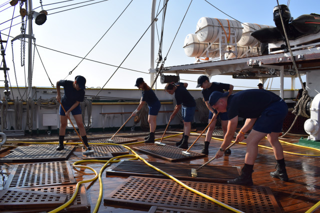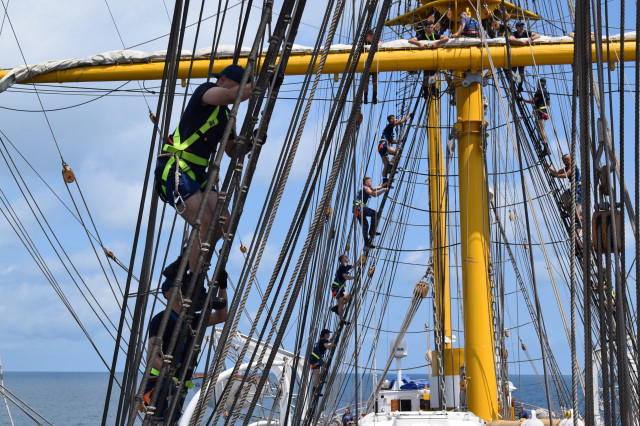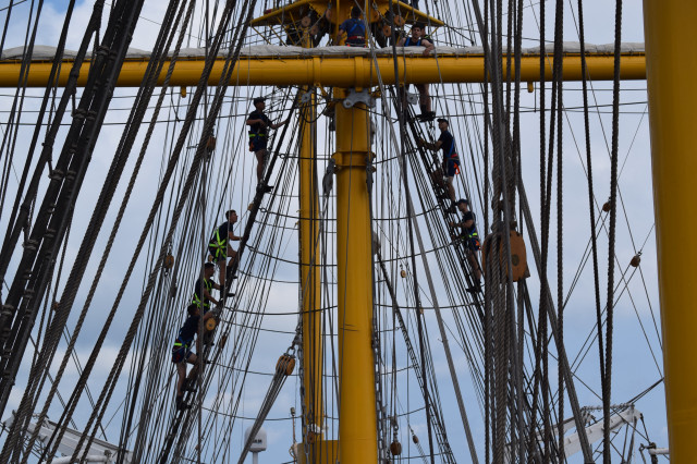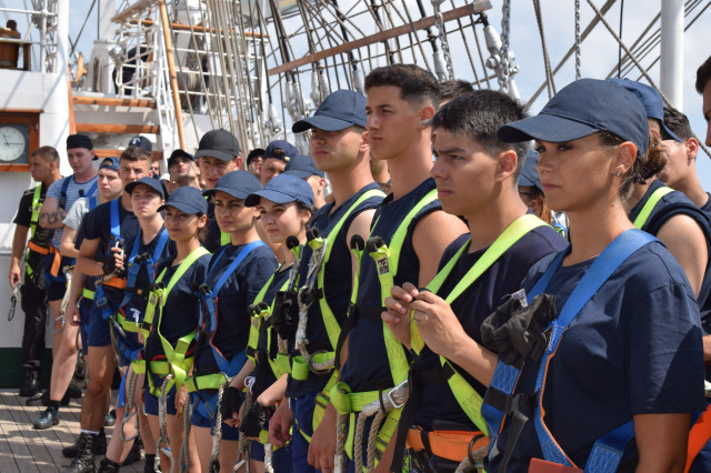 Ambarcați la nava-școală cu doar o săptămână înainte de plecarea în marș, cei 64 de studenți de anul II ai Academiei Navale „Mircea cel Bătrân” au avut la dispoziție un timp destul de limitat pentru a exersa, „la rece”, rolurile de brațare a vergilor, precum și urcările în arboradă. Ca de fiecare dată, vitamina succesului este entuziasmul tinerilor cadeți. „Domnule căpitan, când urcăm la «rândunică»?”, se aude cel mai des când studenții sunt convocați la puntea centru pentru lucrul în arboradă.