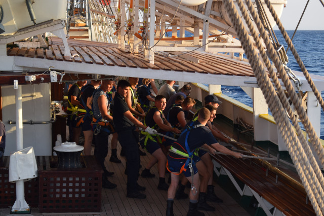 Experiența urcării în arboradă în timp ce vântul atinge nivelul 5 pe scara Beaufort, iar gradul mării este undeva între 2 și 3, a revigorat adrenalina studenților militari mai ceva ca orice repriză intensă de înviorare. A fost momentul în care cadeții au aflat cât de puternică poate fi, în realitate natura, dar și cât de imprevizibilă. De asemenea, studenții au realizat cât de eficient propulsor este vântul atunci când umple velele, dar și cât de complexă și mai ales spectaculoasă este navigația pe care unii, pe nedrept, o consideră vetustă.