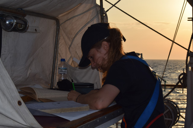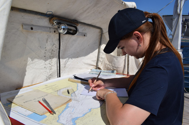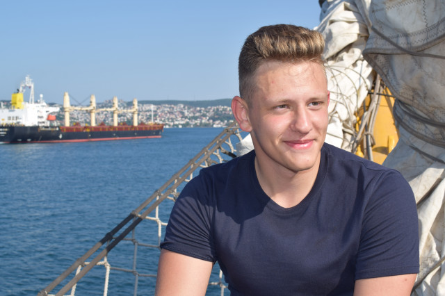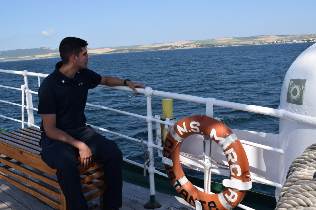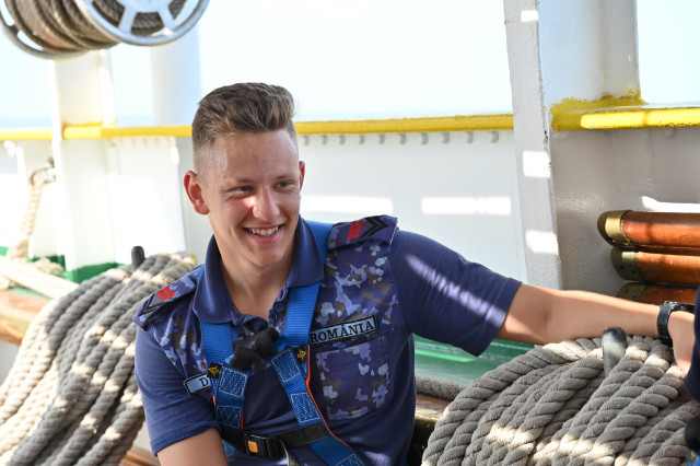 Maria este una dintre studentele care au participat și la programul ERASMUS+ desfășurat de Academia Navală „Mircea cel Bătrân”, iar în acest marș de instrucție este foarte bucuroasă că sunt la bord și 12 cadeți străini cu care poate socializa zi de zi, poate împărtăși cu ei idei și experiențe dar, foarte important pentru ea, își poate exersa și vorbitul în limba engleză.