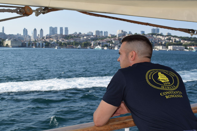 Puțin după ora prânzului, în ziua plecării din Constanța, navigăm în mare liberă, însoțiți la tribord de puitorul de mine și plase 274 „Viceamiral Constantin Bălescu”, care ne va escorta până aproape de intrarea în Bosfor. Prezența camarazilor noștri din cadrul Dizivionului 146 Nave Minare-Deminare se impune în contextul în care conflictul ruso-ucrainean încă tulbură, la propriu și la figurat, apele din Marea Neagră. „Mircea”, prin tradiția sa, este un sinonim materializat al curajului. De 84 de ani îndeplinește misiuni de instruire a cadeților și de diplomație navală în condiții optime, fapt datorat, în mare măsură, și implicării echipajului, iar prin evoluția sa, „Mircea” s-a consacrat și într-un etern promotor al păcii și al bunei înțelegeri între națiuni partenere.