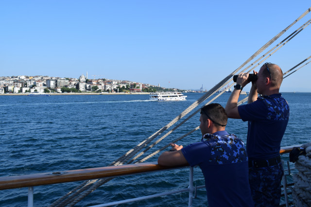 La 24 de ore de la plecarea din Constanța, nava-școală „Mircea” tranzitează Bosforul și, în mod inedit, de această dată, echipajul și studenții au parte de un „tur ghidat”, prin amabilitatea celor doi cadeți turci de la bord, care au pregătit o scurtă prezentare a principalelor repere arhitecturale de pe fiecare mal al canalului Istanbul (Bosfor).