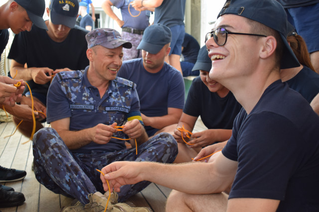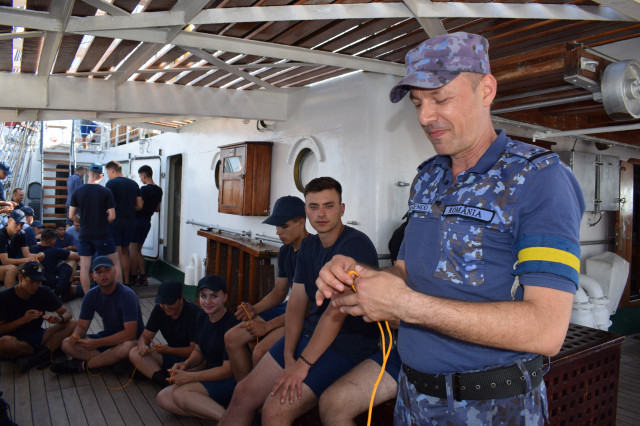 La intrarea în Marea Marmara, crestele valurilor par să țină isonul navei. În calmul care s-a așternut la bordul navei sunetul dominant este doar al motorului principal. Jos, în cazarma 3, locotenent-comandorul Silviu Moraru, cel care îndeplinește atribuțiile de șef al comunicațiilor în acest marș de instrucție, i-a adunat pe studenții militari pentru a le ține un curs despre sistemele de balizaj. După curs, urmează o activitatea ceva mai antrenantă și mai distractivă pentru studenții militari: atelierele de noduri marinărești, la puntea centru. Șeful de echipaj, maistrul militar clasa a II-a Gabriel Tomița, ajutat de maiștrii militari Laurențiu Bahmacenco, Marian Ciocan, Florentin Listoschi, dar și de aspirantul Mihai Alexandru, îi împarte pe studenți în grupe și le oferă bucăți de saulă pentru a învăța fiecare câteva dintre nodurile marinărești simple: nodul opt, nodul de văcar, nodul de gașă etc. În timpul activității, puntea centru se animă simțitor de zâmbetele studenților. La activitate participă, desigur, și cadeții străini, demonstrând că limbajul marinăresc este, într-adevăr, universal și are potențialul de a-i aduce împreună pe oameni, indiferent de naționalitate.