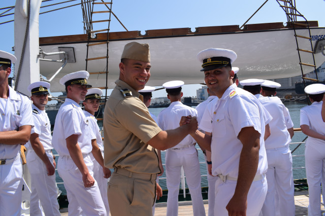 „Pot să spun că, până acum, marșul s-a desfășurat în condiții extrem de bune, am navigat prin strâmtorile turcești Istanbul și Çanakkale, iar acum ne îndreptăm spre arhipelagul grecesc navigând cu vele, de două zile, îndreptându-ne spre portul Pireu unde vom ajunge pe data de 7 și vom sta până pe data de 11. Vom avea nava deschisă la vizită pentru cetățenii din Grecia care vor să viziteze nava-școală «Mircea»”, a punctat comandantul NS „Mircea”, comandorul Mircea Târhoacă, adăugând faptul că, și de această dată, velierul simbol al Forțelor Navale Române își va îndeplini atribuțiile de ambasador onorific al României, prin desfășurarea de activități de diplomație navală.