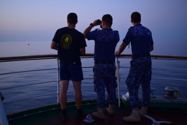 De sub linia orizontului, soarele se înalță tot mai curios de agitația de la bordul navei noastre. În lumina crudă și în umezeală dimineții prinse pe Marea Ionică, militarii de la bordul Navei-școală „Mircea” recapătă controlul asupra întregii situații. Victima căzută la apă este recuperată în viață și predată pentru îngrijire la infirmerie, incendiile sunt lichidate fără probleme majore, toți membrii echipajului au reușit să iasă pe punte la timp, gaura de apă este astupată, iar atacurile piraților sunt respinse eficient. Studenții militari pot răsufla și ei ușurați după cea mai intensă sesiune de înviorare pentru care comandantul navei a creat toate premisele să rămână în istoria navei și a marșurilor de instrucție.