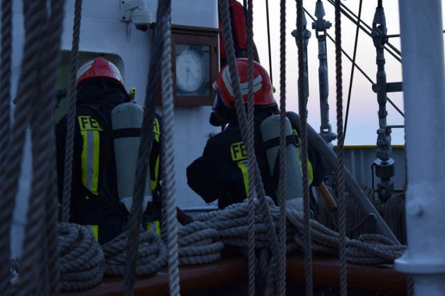 Abia dezmeticit din evenimentele, simulate, din fericire, întregul echipaj se întreabă „Ce-a fost asta?!”. Răspunsul vine odată cu raportul navei, de la ofițerul secund, căpitanul Robert Molodeț, iar explicația este adresată, în special, cadeților de la bord: „Veți deveni ofițeri de marină pe nave militare care au șanse să ajungă în zone de război, iar situații complexe precum cea simulată în această dimineață pot deveni, ușor, realitate. În cazul unui atac asupra navei, vă puteți confrunta cu mai multe incendii care se manifestă simultan în compartimente diferite ale navei, riscați să aveți oameni răniți, în timp ce nava se află sub atac. Sunt situații tensionate pe care trebuie să fiți în măsură să le gestionați cât mai eficient. Acesta a fost și scopul exercițiului din această dimineață”.