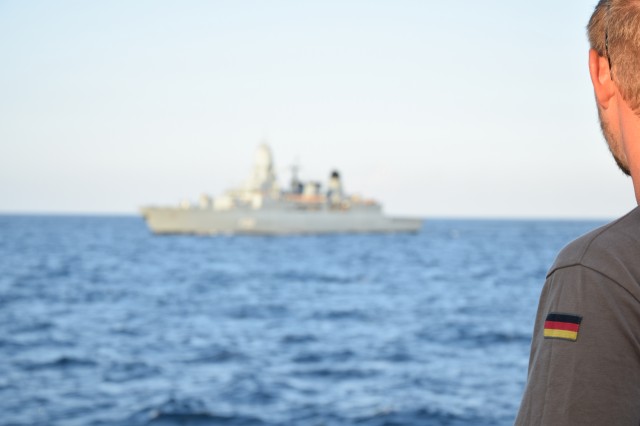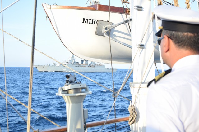 Bricul „Mircea”, așa cum este cunoscut pentru urechile românilor, a reușit, în drumul său spre Italia, să facă o impresie excelentă și în largul mărilor, nu numai în apropierea coastelor. Un moment, ce poate fi dat ca exemplu, a fost acela în care activitățile de urcare în arboradă, bricuit și întreținere a navei au fost întrerupte pentru a saluta militarii de la bordul fragatei germane F221, cu care velierul nostru s-a întâlnit în timpul navigării sale în Marea Adriatică. Cadrul respectiv a fost unul important pentru românii de pe nava-școală pentru că numărul de bordaj ne-a amintit de fregata românească „Regele Ferdinand” și am avut din nou ocazia să ne simțim aproape de casă, însă pentru cadeții și instructorii germani, ambarcați cu noi, a fost, cu siguranță, unul special, aceștia având ocazia să revadă o parte din ceea ce înseamnă țara, dar poate și viitorul lor.