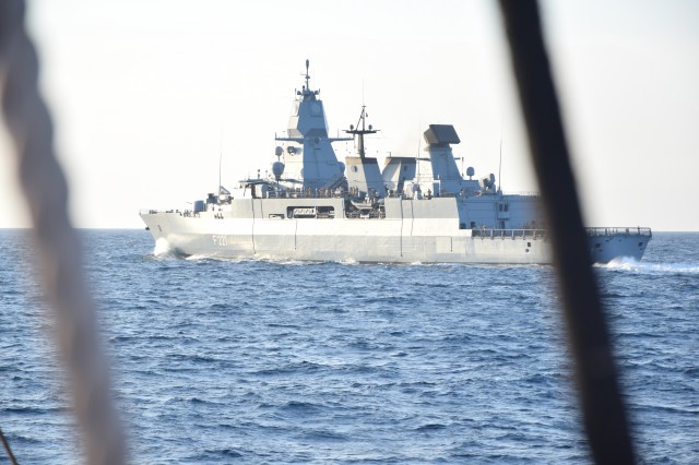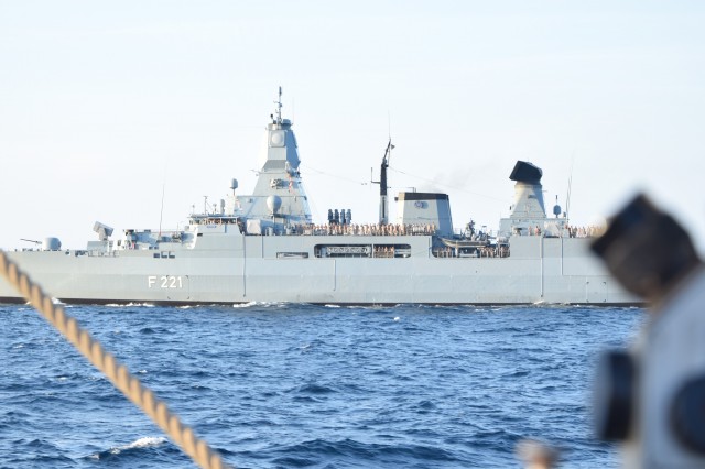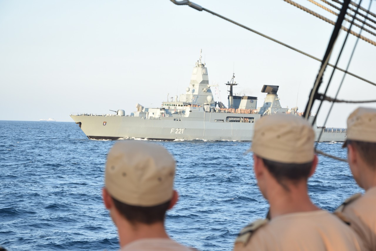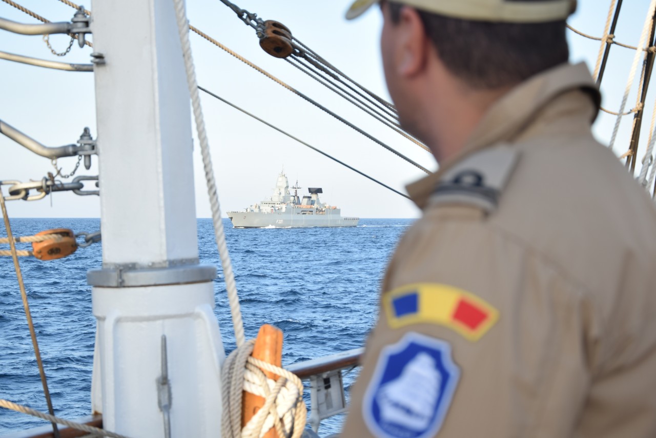 Nava-Şcoală Mircea salută fregata germană F221