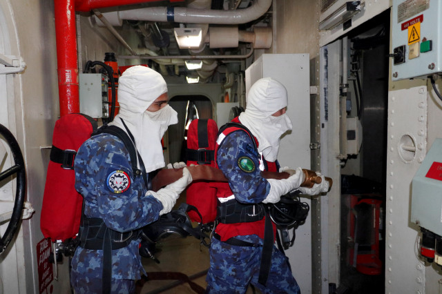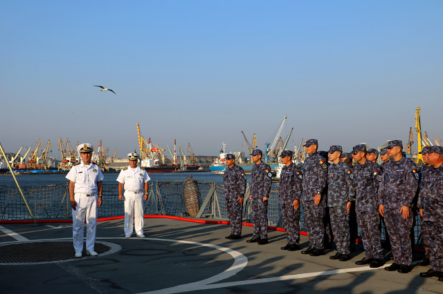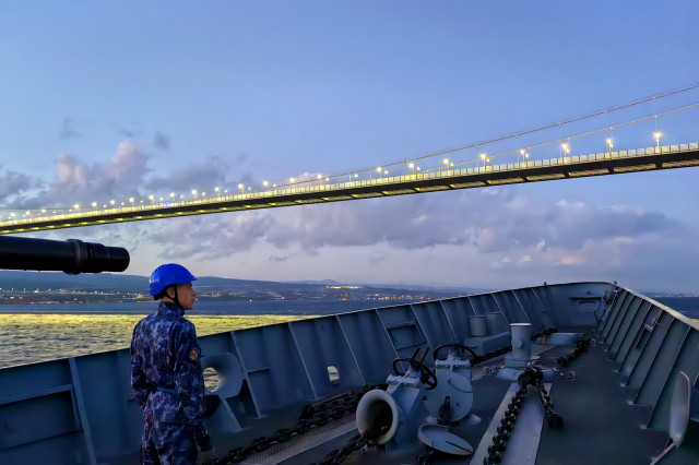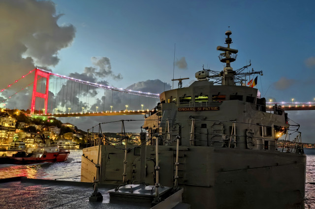 În cele două zile, la bordul navei au avut loc exercițiile aprobate în planul de acțiune pentru misiune, printre care cele de abandon și de vitalitate a navei, precum și antrenamente specifice stărilor de pregătire pentru luptă. Condițiile meteorologice ne-au permis, la trecerea printre cele două strâmtori, să ne bucurăm de priveliștea celor două continente, Asia și Europa, și, totodată, echipajul a admirat somptuozitatea podurilor care unesc cele două continente.