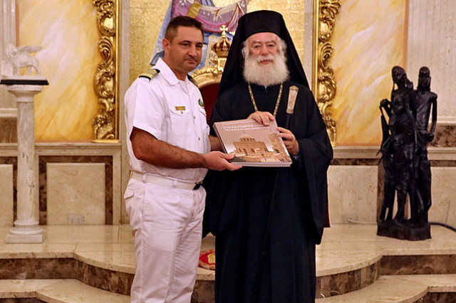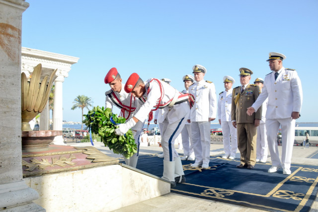 Cea de-a doua zi a escalei egiptene i-a implicat pe comandanții navelor din grupare într-o acțiune solemnă, aceea de depunere de coroane de flori la Monumentul Soldatului Necunoscut. O delegație de la fregata „Regina Maria”, condusă de comandantul navei, comandorul Mitel ALEXANDRU, a răspuns invitației Patriarhului Theodor al II-lea al Alexandriei și a vizitat Patriarhia Creștin-Ortodoxă și biserica Sf. Sava. Spre seară, la bordul navei românești a urcat un alt oaspete important, însărcinatul român cu afacerile în Egipt, Adrian Găman.
