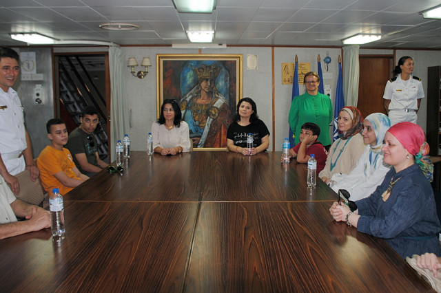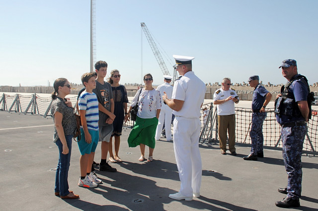 De asemenea, odată cu acostarea navei românești în baza navală din Alexandria, unul dintre primii oaspeți de la bord a fost atașatul român al Apărării, Militar, Aero și Naval, colonelul Cătălin Cîrlănaru. Tot în prima zi, pe 25 septembrie, fregata „Regina Maria” a găzduit „Ziua Porților Deschise”, special pentru comunitatea românilor din Egipt. Timp de patru ore, oaspeții au avut posibilitatea de a păși, din nou, pe teritoriu românesc, vizitând nava și interacționând cu membrii echipajului.