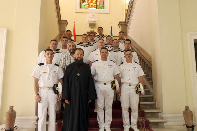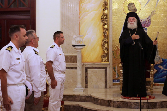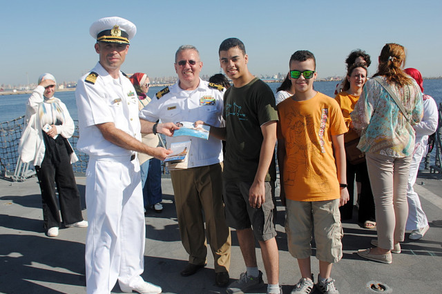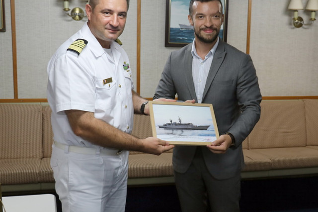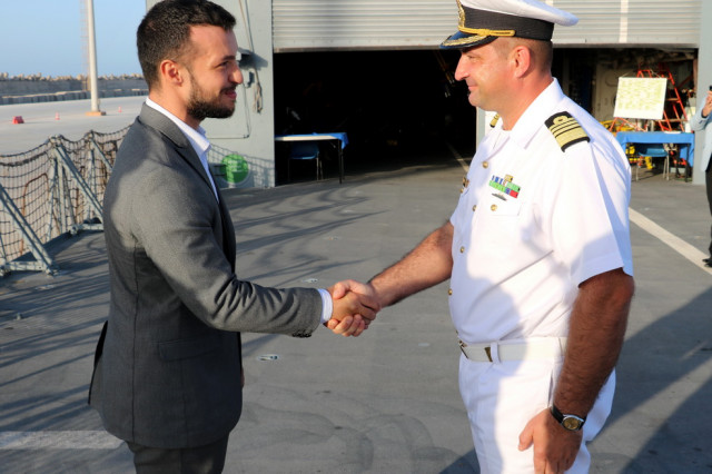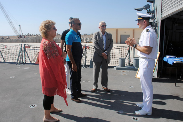 La sosirea în portul egiptean, gruparea navală din cadrul Operației NATO „Sea Guardian” a fost întâmpinată de reprezentanți din Baza Navală din Alexandria, urmând ca, după acostare, o delegație compusă din comandantul grupării și din comandanții de nave să fie primită de Șeful Statului Major al Forțelor Navale Egiptene și de comandantul Bazei Navale din Alexandria. Pentru reciprocitate și ca un semnal de considerație, spre seară, la bordul navei care conduce gruparea a fost organizată o recepție oferită de comandorul Ioannis Retsas, în calitate de comandant al grupării maritime NATO pentru operația „Sea Guardian”.