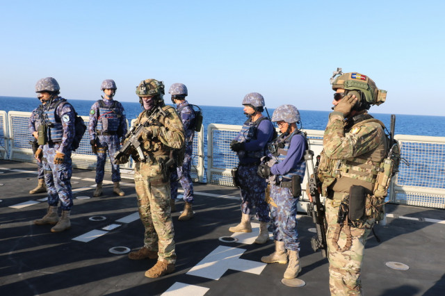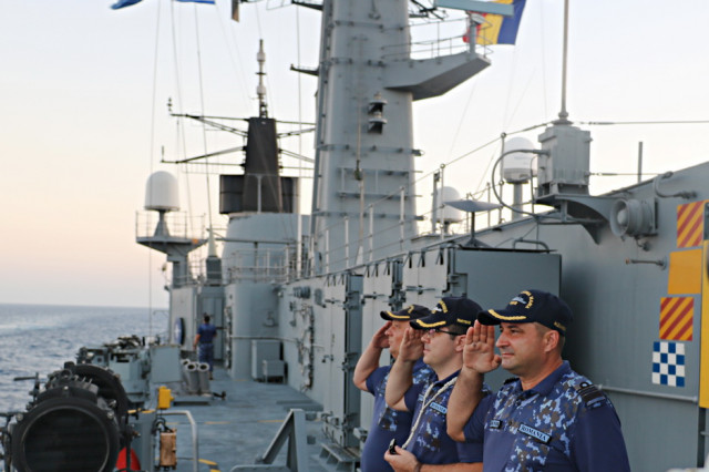 Duminică, 24 septembrie, gruparea navală condusă de MARCOM a desfășurat exerciții în comun cu fregata ENS „Bernees” (F1003) aparținând Forțelor Navale ale Egiptului. Pe timpul activităților, navele au desfășurat exerciții de inspecții la bordul navelor, manevre și evoluții navale, secvențe de comunicații, de acordare a primului ajutor pe mare, secvențe de luptă la suprafață și de apărare antiaeriană.