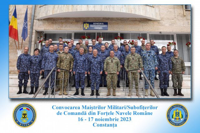 În perioada 16-17 noiembrie, s-a desfășurat, la Constanța, în Sala Elite a Căminului militar C2, Convocarea semestrială a maiștrilor militari și subofițerilor de comandă din structurile subordonate Statului Major al Forțelor Navale. Activitatea a fost condusă de maistrul militar de comandă al Statului Major al Forțelor Navale, maistru militar principal Marius Irimia.