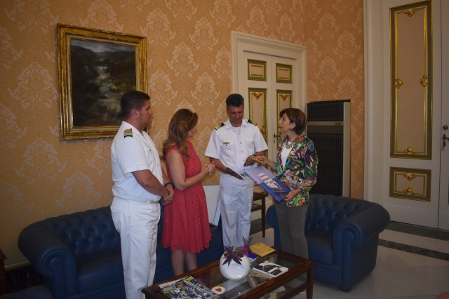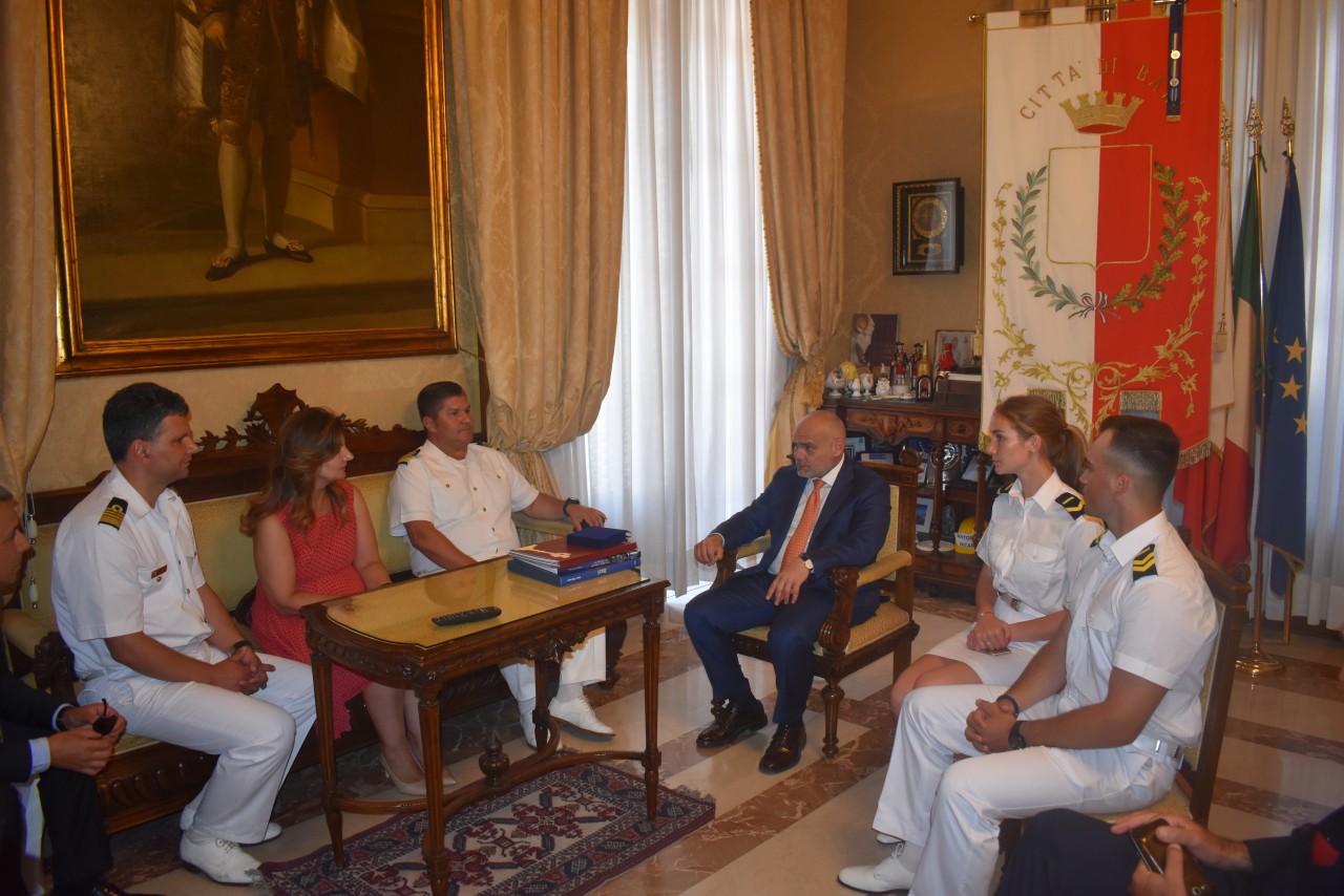 Staționarea celor 186 de militari, elevi și studenți, în Bari, nu a constat numai în vizite oficiale efectuate de către reprezentanții navei pentru a mulțumi în numele bunei colaborări, ci, alături de diplomații care reprezintă comunitatea română din zonă, am vizitat cu toții orașul, dar și cele mai populare și atractive obiective turistice din împrejurimi. Astfel, emoția de a atinge pământul, după opt zile de navigat în cinci mări europene, a fost amplificată datorită locurilor fascinante ale acestei bucăți a Italiei.