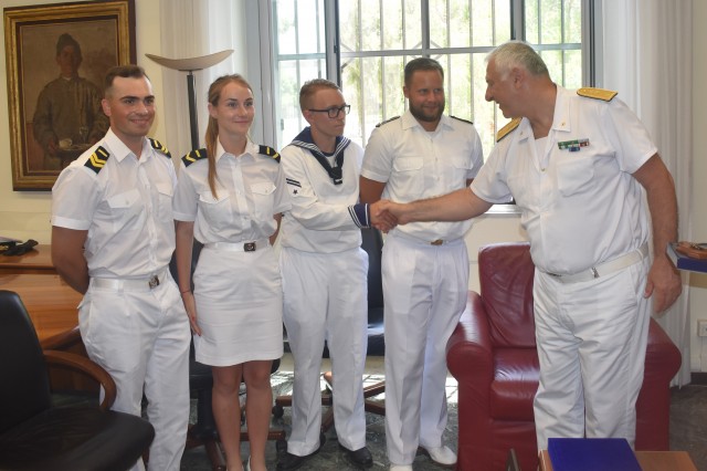 Bricul „Mircea”, așa cum este cunoscut pentru urechile românilor, a reușit, în drumul său spre Italia, să facă o impresie excelentă și în largul mărilor, nu numai în apropierea coastelor. Un moment, ce poate fi dat ca exemplu, a fost acela în care activitățile de urcare în arboradă, bricuit și întreținere a navei au fost întrerupte pentru a saluta militarii de la bordul fragatei germane F221, cu care velierul nostru s-a întâlnit în timpul navigării sale în Marea Adriatică. Cadrul respectiv a fost unul important pentru românii de pe nava-școală pentru că numărul de bordaj ne-a amintit de fregata românească „Regele Ferdinand” și am avut din nou ocazia să ne simțim aproape de casă, însă pentru cadeții și instructorii germani, ambarcați cu noi, a fost, cu siguranță, unul special, aceștia având ocazia să revadă o parte din ceea ce înseamnă țara, dar poate și viitorul lor.