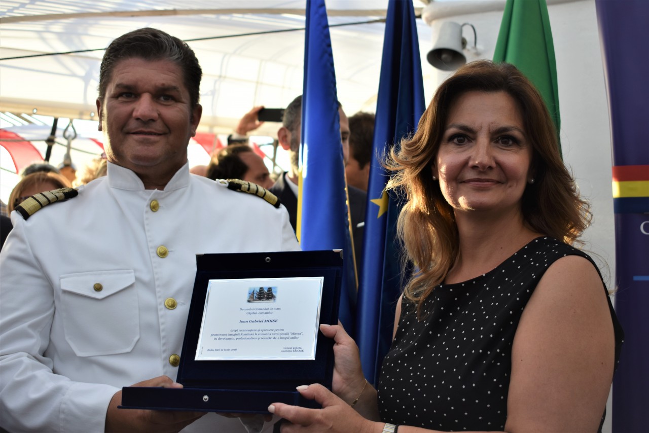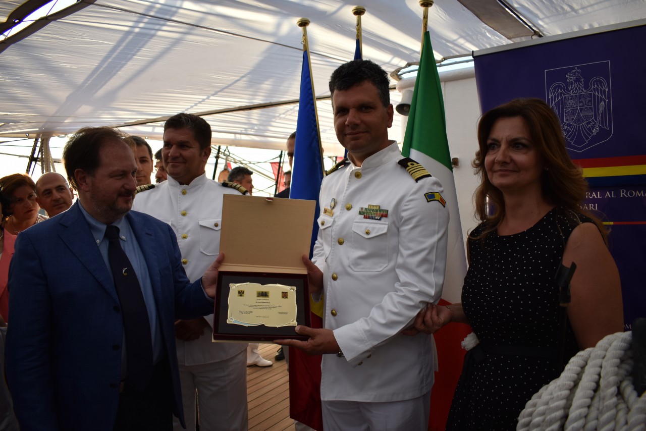 Ambasadorul României, Nava-Școală „Mircea”, a îndeplinit cu succes prima misiune de reprezentare a țării și a Marinei Militare, din timpul marșului de instrucție, după ce a acostat în portul din „călcâiul” Italiei, unde a fost așteptat de către oficialii Consulatului General al României în Bari. Timp de trei zile, vizitatorii velierului nostru au avut ocazia să admire atât frumusețea navei, rod al muncii a zeci de generații de marinari militari, cât și ținuta impecabilă a celor ambarcați pentru acest marș de instrucție. Impecabil a fost și „Mircea”, fapt ce se datorează îndeplinirii sarcinilor în detaliu de către marinarii militari, care au avut grijă ca nava lor să se prezinte la cele mai ridicate standarde estetice și tehnice, inspirând, astfel, eleganță, profesionalism și respect.