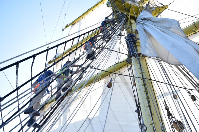 Bricul „Mircea”, așa cum este cunoscut pentru urechile românilor, a reușit, în drumul său spre Italia, să facă o impresie excelentă și în largul mărilor, nu numai în apropierea coastelor. Un moment, ce poate fi dat ca exemplu, a fost acela în care activitățile de urcare în arboradă, bricuit și întreținere a navei au fost întrerupte pentru a saluta militarii de la bordul fragatei germane F221, cu care velierul nostru s-a întâlnit în timpul navigării sale în Marea Adriatică. Cadrul respectiv a fost unul important pentru românii de pe nava-școală pentru că numărul de bordaj ne-a amintit de fregata românească „Regele Ferdinand” și am avut din nou ocazia să ne simțim aproape de casă, însă pentru cadeții și instructorii germani, ambarcați cu noi, a fost, cu siguranță, unul special, aceștia având ocazia să revadă o parte din ceea ce înseamnă țara, dar poate și viitorul lor.