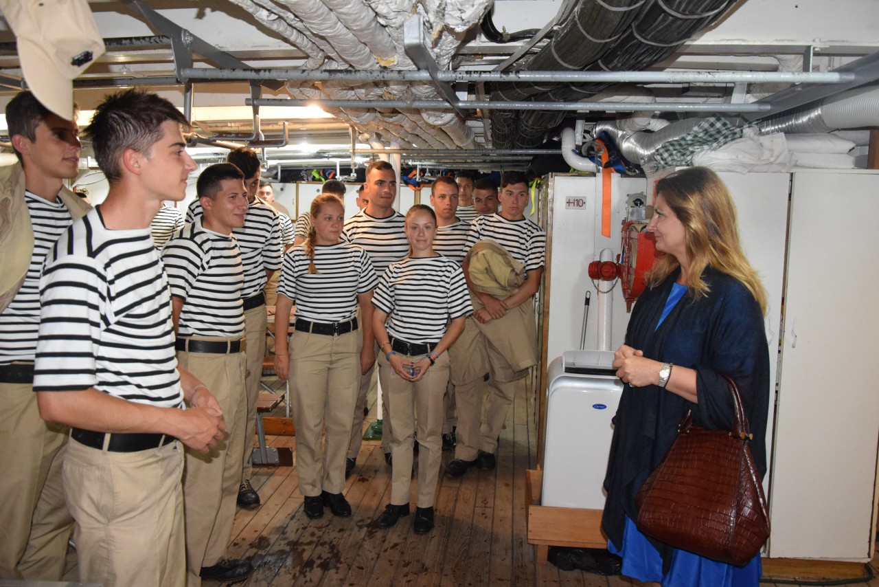 Ambasadorul României, Nava-Școală „Mircea”, a îndeplinit cu succes prima misiune de reprezentare a țării și a Marinei Militare, din timpul marșului de instrucție, după ce a acostat în portul din „călcâiul” Italiei, unde a fost așteptat de către oficialii Consulatului General al României în Bari. Timp de trei zile, vizitatorii velierului nostru au avut ocazia să admire atât frumusețea navei, rod al muncii a zeci de generații de marinari militari, cât și ținuta impecabilă a celor ambarcați pentru acest marș de instrucție. Impecabil a fost și „Mircea”, fapt ce se datorează îndeplinirii sarcinilor în detaliu de către marinarii militari, care au avut grijă ca nava lor să se prezinte la cele mai ridicate standarde estetice și tehnice, inspirând, astfel, eleganță, profesionalism și respect.