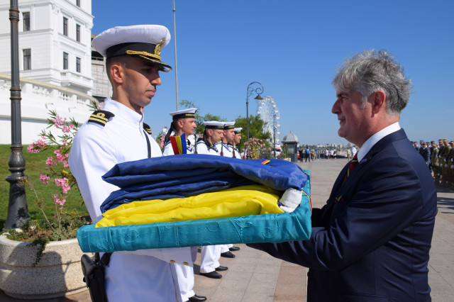 Forțele Navale Române participă miercuri, 26 iunie, în garnizoanele Constanța, Brăila, Mangalia, București, Tulcea și Babadag, la ceremoniile militare și religioase organizate cu prilejul Zilei Drapelului Național...