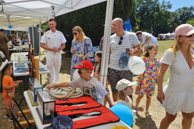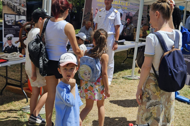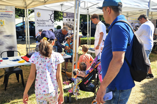 Sute de copii au vizitat standurile Forțelor Navale Române și au interacționat cu marinarii militari, au învățat să facă noduri marinărești și au avut ocazia de a privi îndeaproape machetele de nave, timona, hărțile de navigație, colacele de salvare și toate echipamentele specifice.