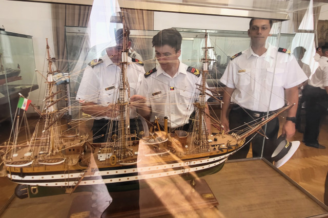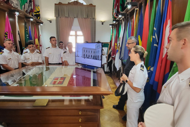 A doua zi, 100 de cadeți români şi străini, alături de comanda navei şi a marşului, au vizitat Academia Navală italiană. Timp de două ore cadeţii au putut să viziteze spaţiile de studiu, laboratoarele, simulatoarele de navigație, biblioteca istorică plină de cărţi vechi de mare valoare (există şi o bibliotecă modernă cu săli de studiu), muzeul instituţiei, capela, sala de sport, piscina și portul propriu de ambarcaţiuni cu vele pentru antrenamente de navigaţie pe mare. Comandorul Mircea Târhoacă, comandantul marşului, şi căpitan-comandorul Silviu Marius Moraru, comandantul Navei-Școală „Mircea” au fost primiţi de comandorul Alessandro Trivisonne, locţiitorul comandantului academiei.
