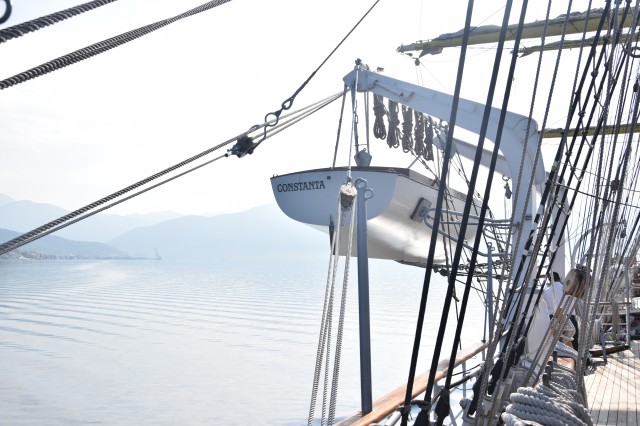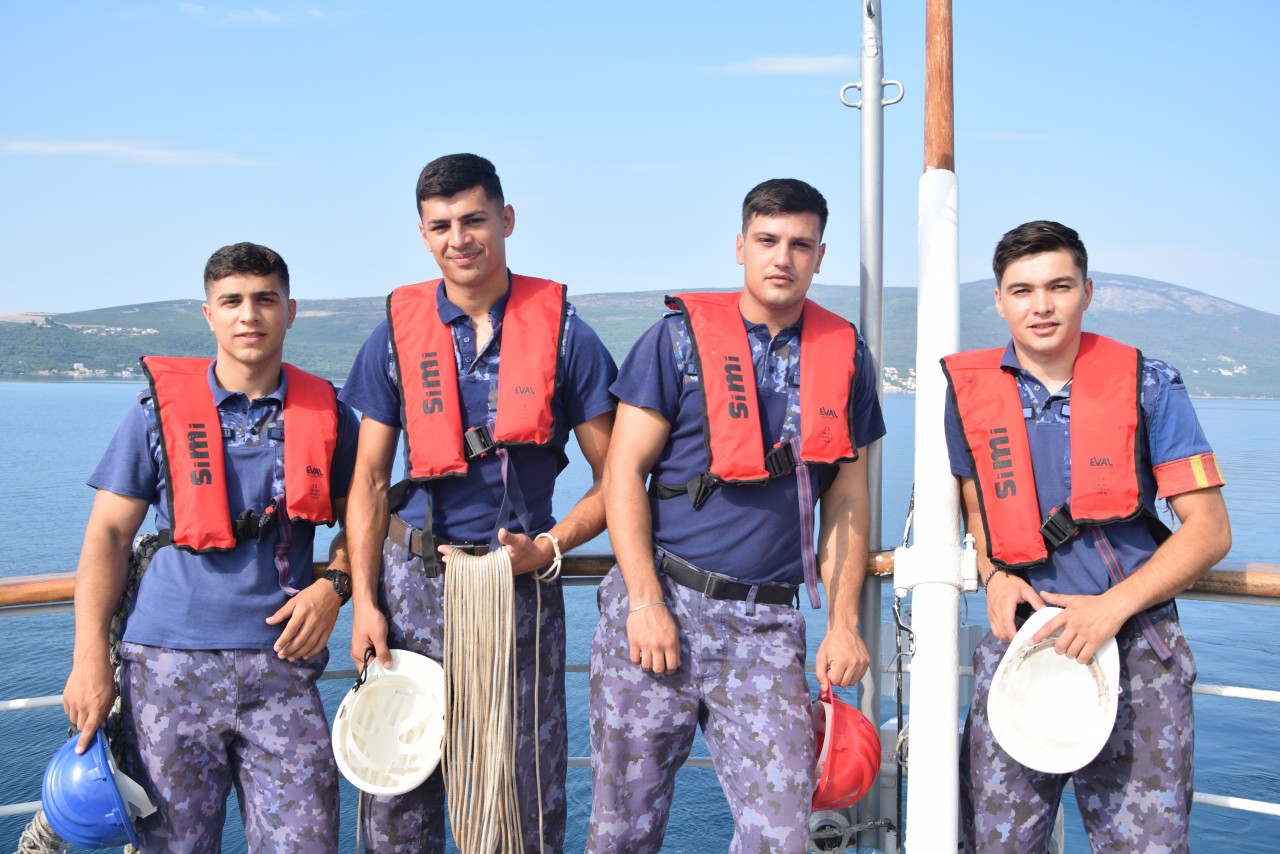 Calmul Golfului Kotor a permis lăsarea la apă a ambarcațiunilor de 10+1 și desfășurarea lecțiilor școlii de rame. Astfel, fiecare cadet, alături de alți nouă colegi, a avut ocazia să învețe și să exerseze, în barcă, o nouă procedură ce include munca în echipă și în sincron. Efortul lor a fost răsplătit cu satisfacția de a depăși cu brio o nouă provocare, dar și cu rezervarea celor mai bune locuri pentru a admira nava-școală, personajul principal într-un peisaj de poveste.