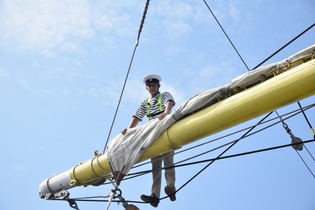 După plecarea din Italia, instructorii de la bord au continuat pregătirea cu viitorii marinari militari, fiecare moment al zilelor pe mare fiind încărcat cu activități atât pe navă, cât și în apele Mării Adriatice. Condițiile meteorologice au reprezentat un element important în ceea ce a privit organizarea programului pentru cadeți. Vântul bun și marea mai puțin liniștită au dus membrii echipajului cu gândul la un singur lucru, cel al întinsul velelor pentru a continua drumul cu ajutorul lor. Acest aspect a reprezentat o nouă lecție, deja învățată, pentru cei aflați în practică. Buna organizare, rolurile știute de fiecare și atenția coordonatorilor au făcut din manevra complicată un adevărat spectacol, atât pentru marinarii vechi, cât și pentru cei din afara fenomenului.