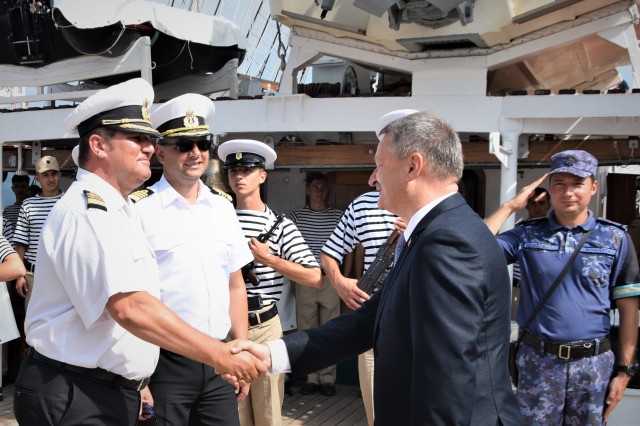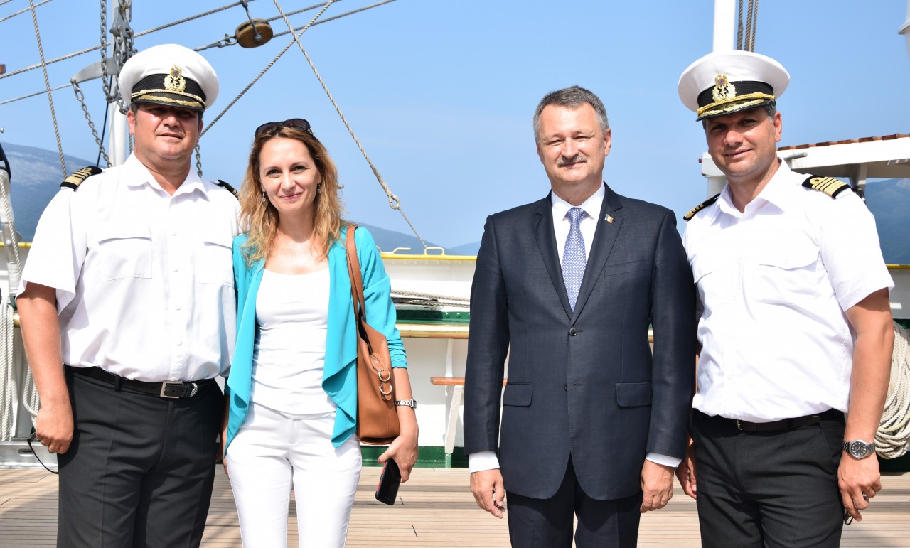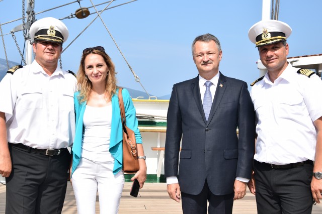 Astfel, în cel de-al doilea port al călătoriei noastre, am fost așteptați ca de obicei de oficialitățile române din teritoriu, pe care cadeții noștri le-au salutat marinărește din înaltul catargelor. „Am lăsat ancora la apă”, iar nava noastră a devenit în acea zi gazda reprezentanților celor mai importante instituții din zonă, dar și a fraților noștri de acasă, care, la invitația Eminenței Sale domnul Ferdinand Nagy, Ambasadorul României la Podgorița, au venit pentru a ne cânta românește spre bucuria tuturor.